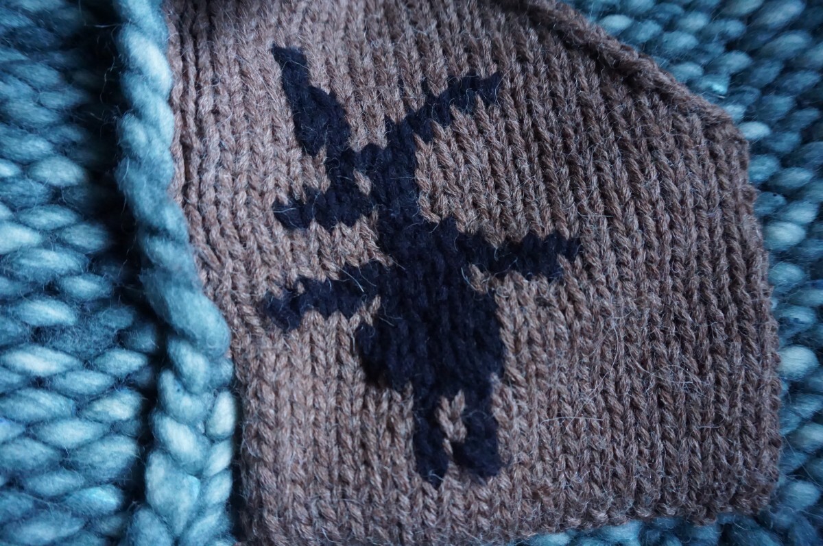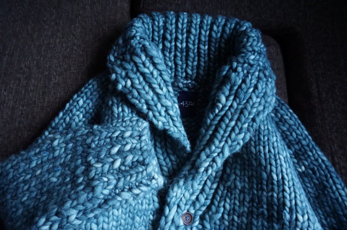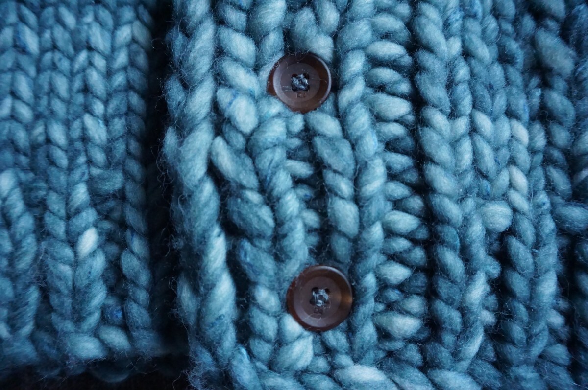 ウール、ナイロン、シルク、様々な染めの糸をミックスして、ざっくりと手編みしたふっくら感。