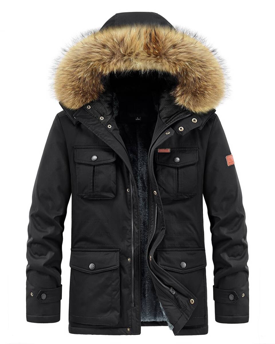 新品★メンズ モッズコート ミリタリージャケット 裏ボア フード付き ブルゾン 防寒着 作業着 厚手 防風 暖かい アウトドア ブラックM