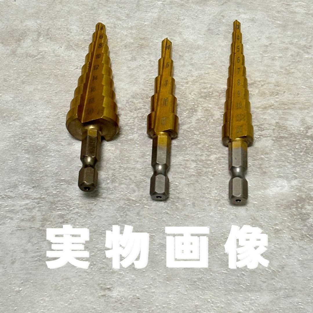 | ステップドリル 3本セット 2セット タケノコ 六角軸 ドリル HSS鋼 チタンコーティング インパクト対応 電動 ビット 穴あけ バリ取り 面取り |