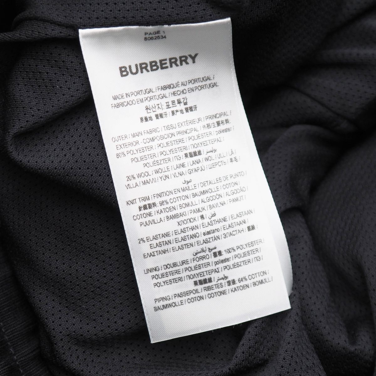 表地 :ポリエステル80%、ウール20% ニットトリム :コットン98%、ポリウレタン2% 裏地 :ポリエステル100% パイピング部分 :コットン64%、ナイロン34% |