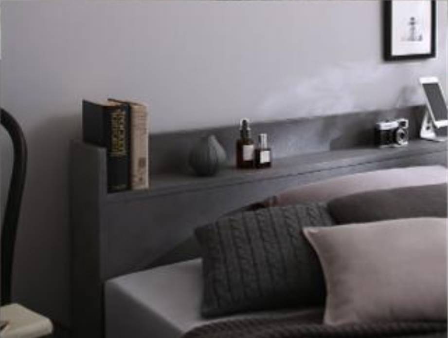 【アウトレット品】マットレス付きダブル・Newデザイン2杯収納コンセント付きベッド・シャドウグレー 10-1