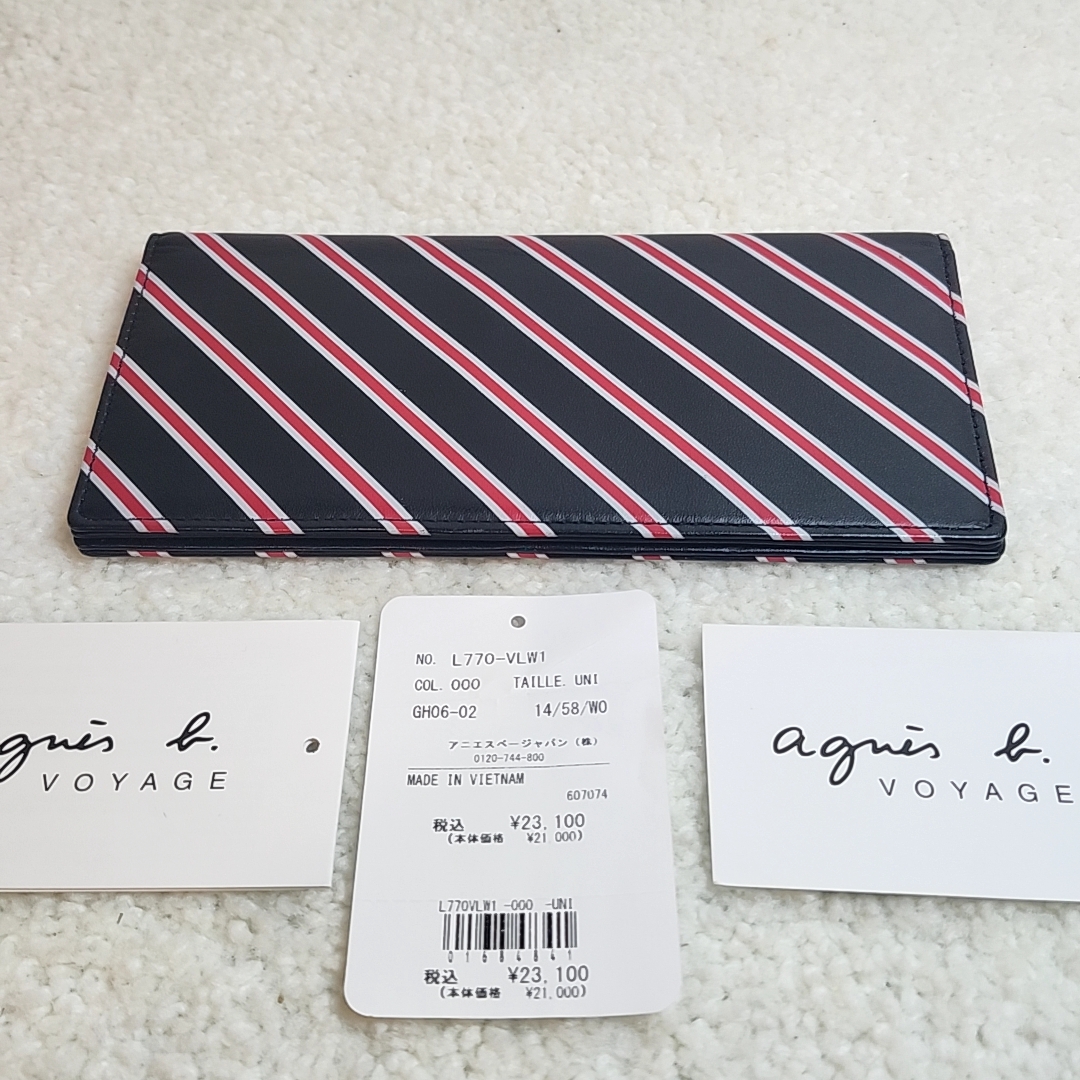 アニエスベー レジメンタル ブラック 本革 長財布 カード入れ 未使用