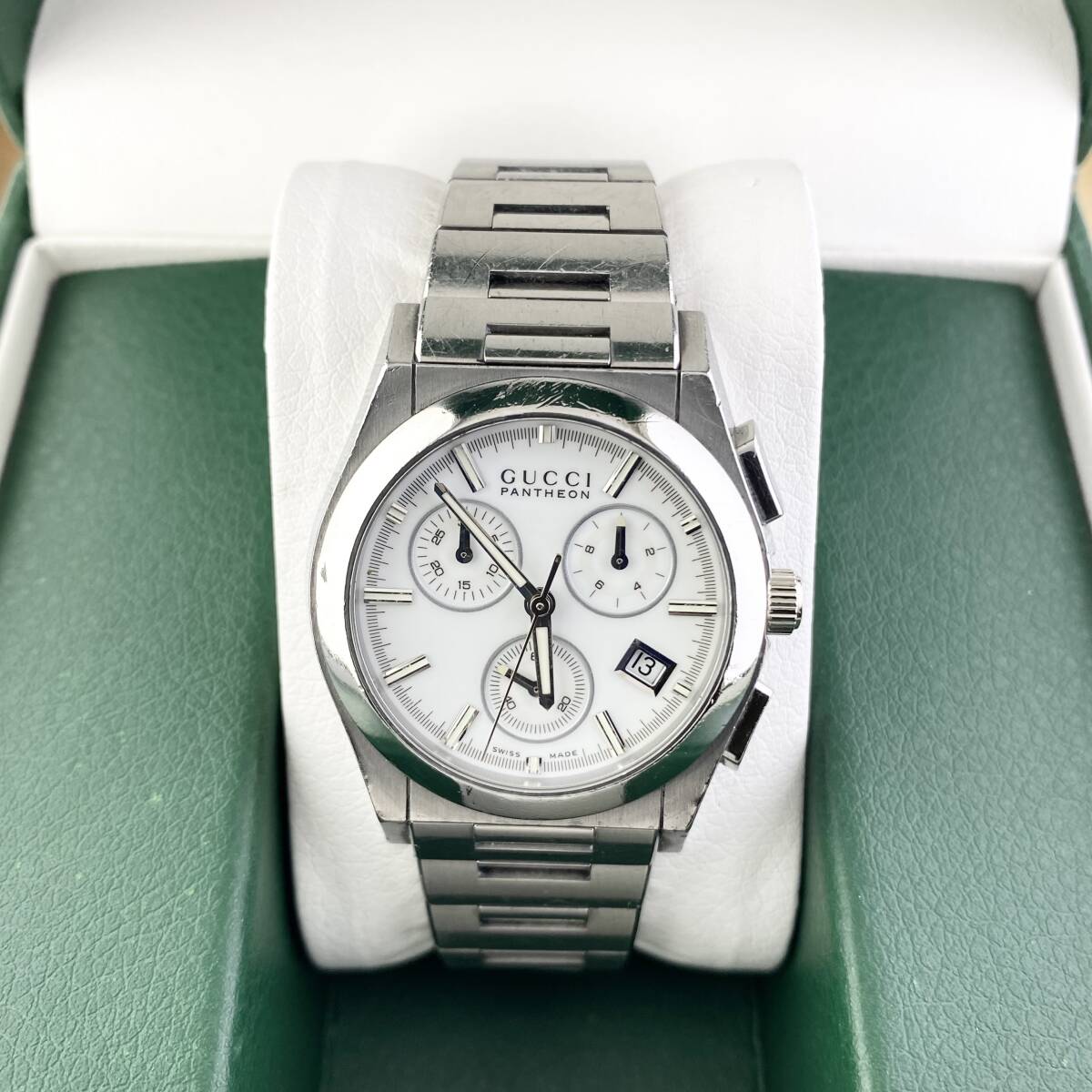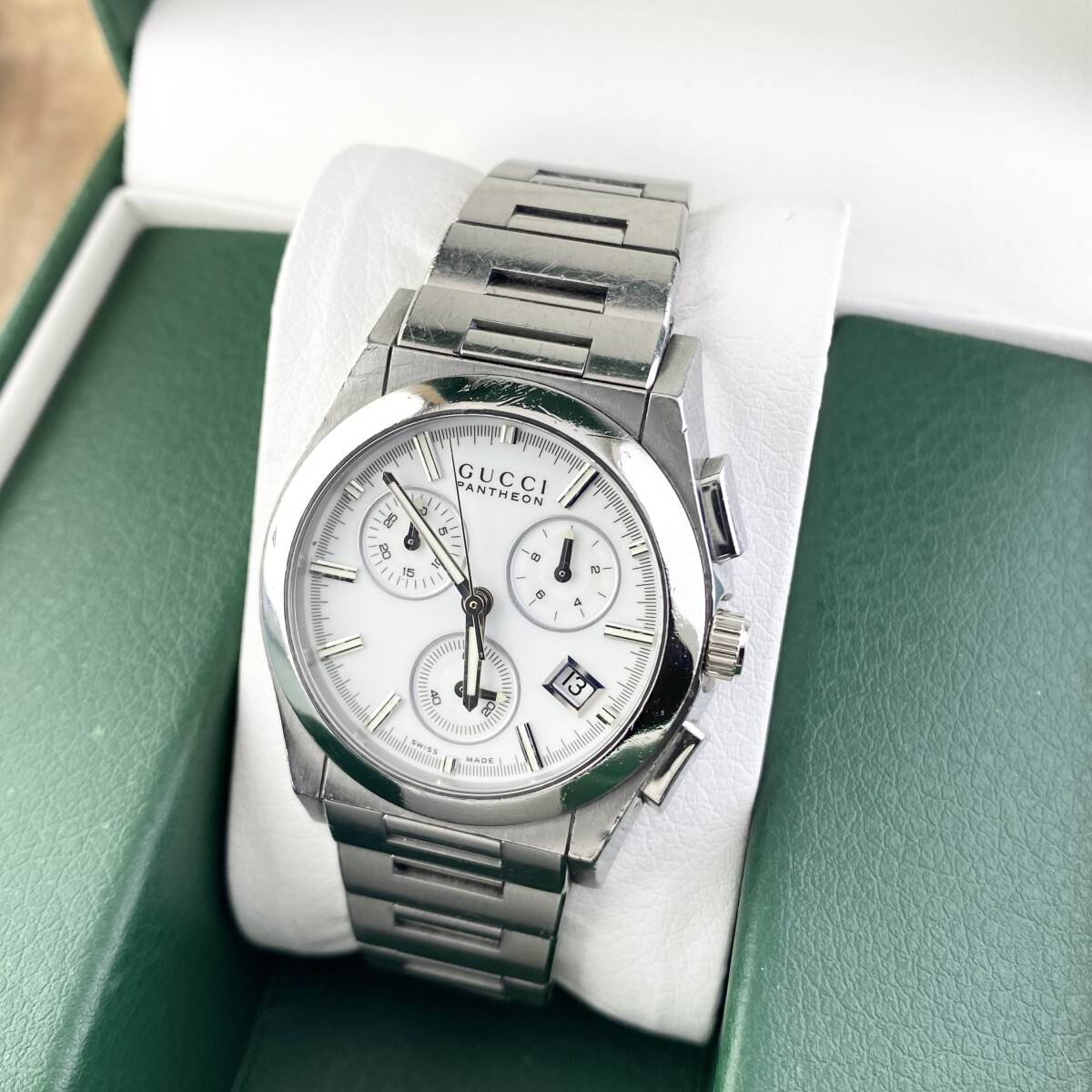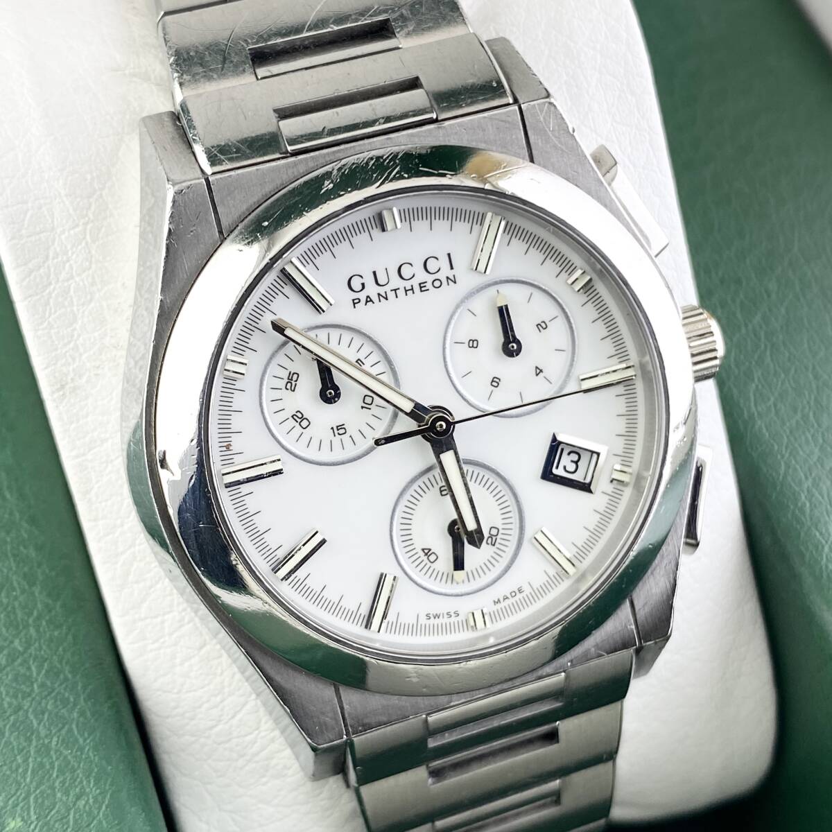 【1円〜】GUCCI グッチ 腕時計 メンズ クロノグラフ PANTHEON パンテオン 115.4 ホワイト文字盤 ラウンドフェイス デイト 可動品 | |||