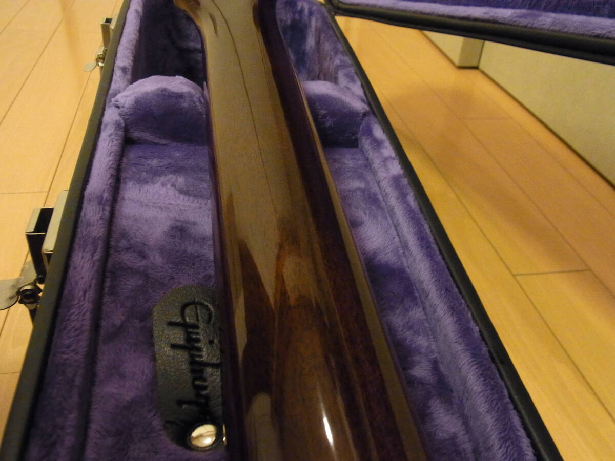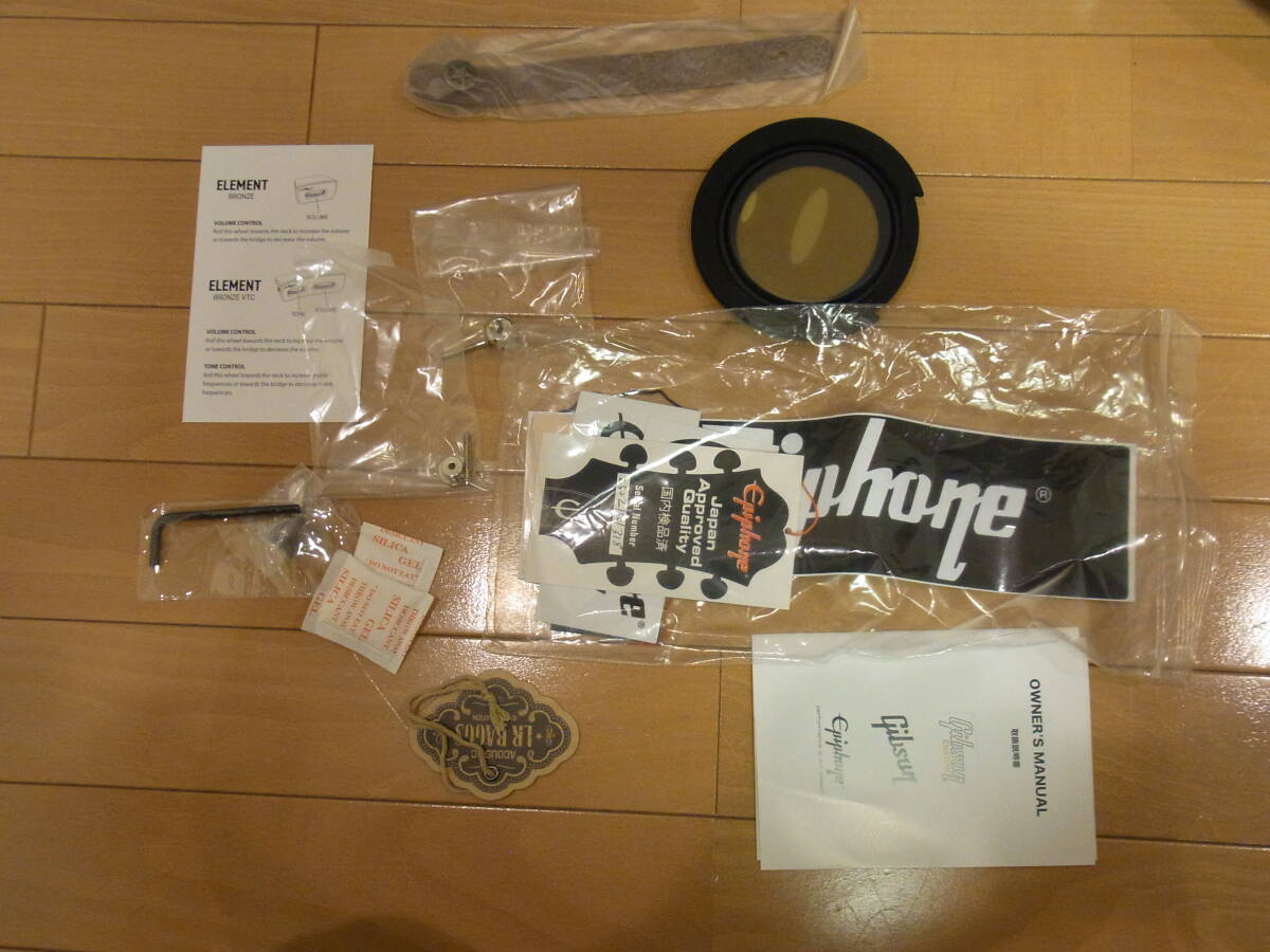 9月末に新品で購入しました。ネックの太さが少し僕の手のひらサイズでは、しっくりこなかった為、手放すことになりました。弾いた時間は、10時間未満になりますので、ほぼ新品同様の状態になります。弦はエリクサーフォスパーブロンズ12-53に張り替えております。出品は本体、ハードケース、書類、ステッカー等、購入時の物すべてになります。ユーザー登録書の購入日は未記入ですので出荷時に記入いたします。到着時の折れ割れについては対応いたしますが、それ以外はノークレームのお取引でお願いいたします。