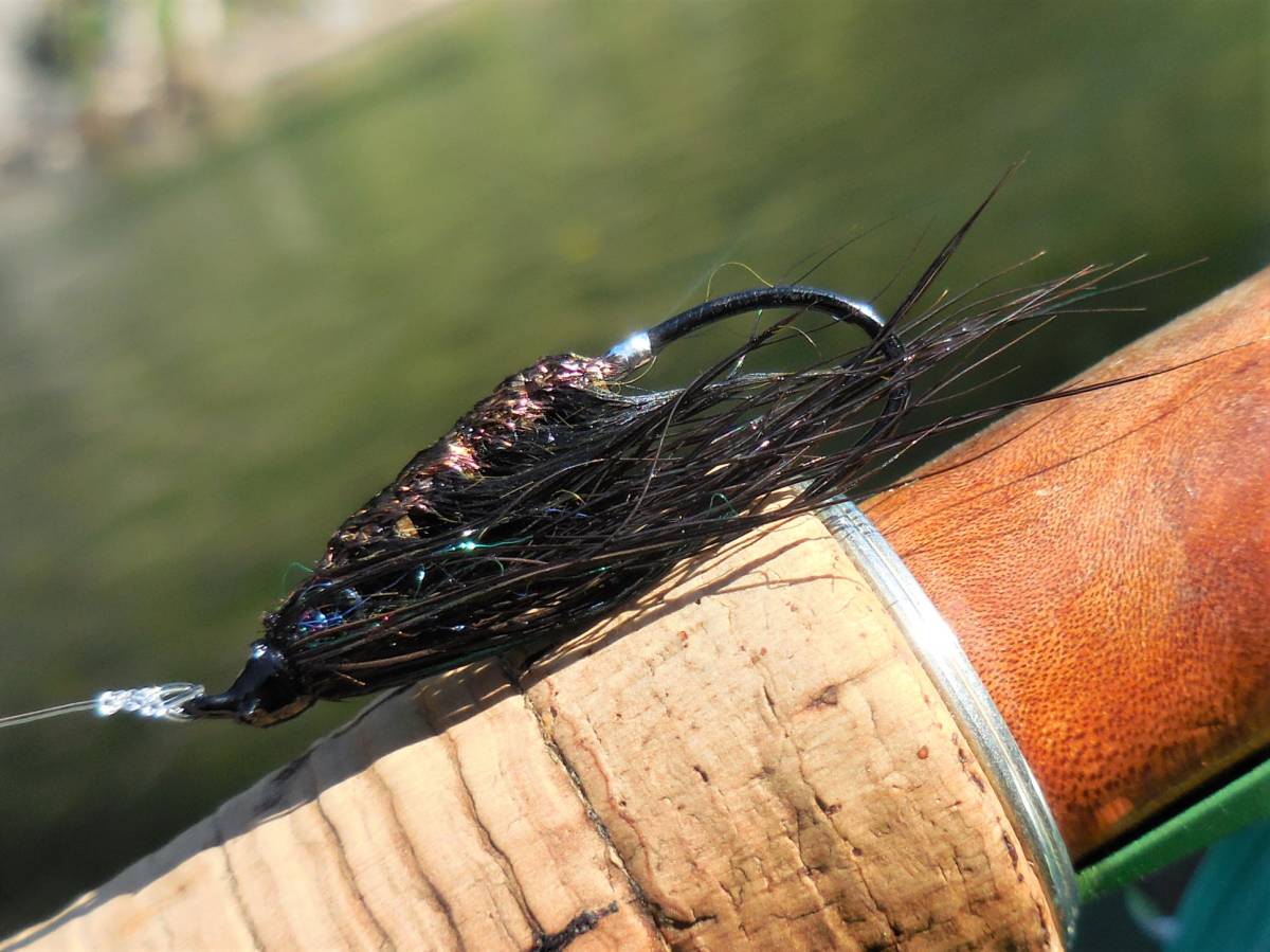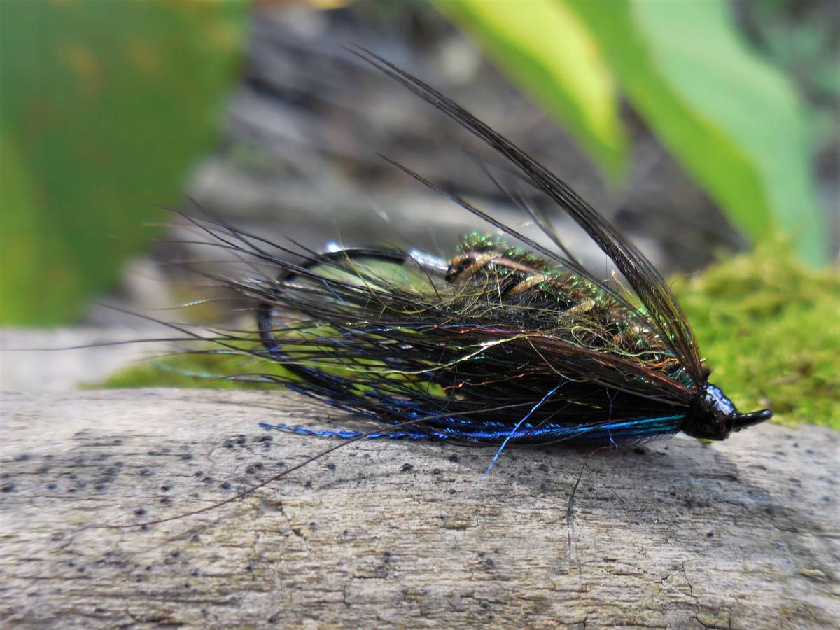 ウエイト入りの黒を基調とした作りで、随所に光物を組み込んでいます。渓流から本流までシーズン通して狙えるウエットに仕上げたお勧めのフライです。