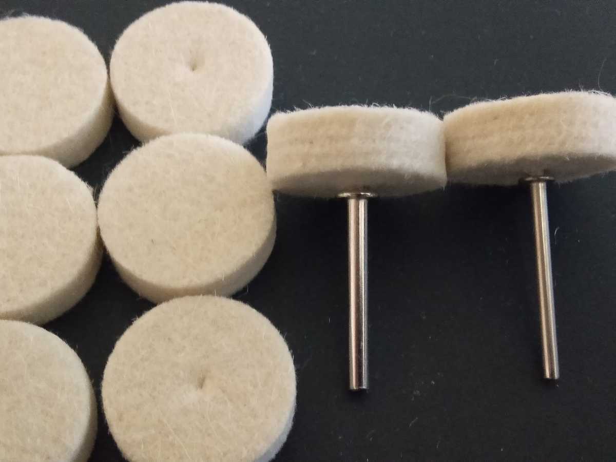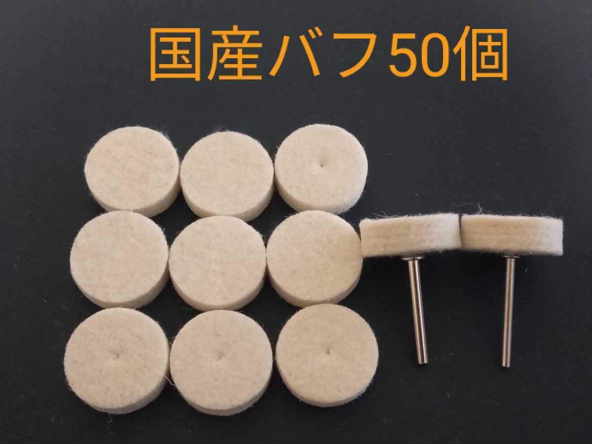 【送料無料】高品質 フェルトバフ ウールバフ 径25mm 50個 軸2本 研磨 鏡面磨き 鏡面仕上げ 鉄道模型HOゲージ用 フエルトバフ