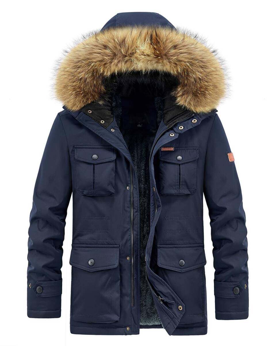 新品★メンズ モッズコート ミリタリージャケット 裏ボア フード付き ブルゾン 防寒着 作業着 厚手 防風 暖かい アウトドア ブルーL