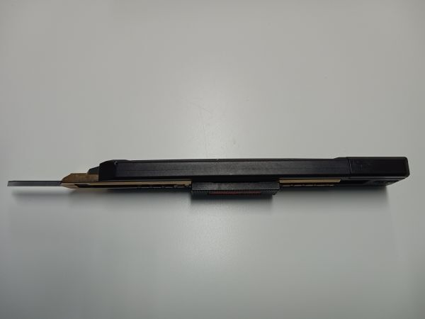 独自の裏から替え刃を入れる連発式小型カッターです。