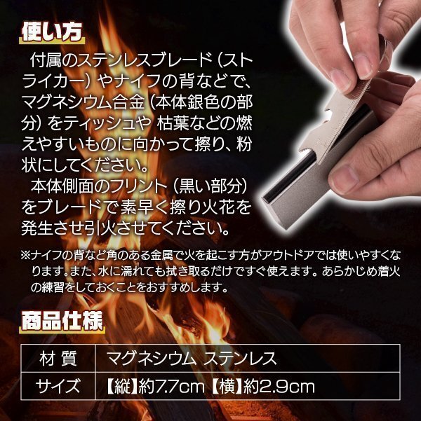 ★送料無料 ファイヤースターター 火打ち石 マグネシウム メタルマッチ 着火器 緊急 災害 アウトドア キャンプ サバイバルツール 火打石