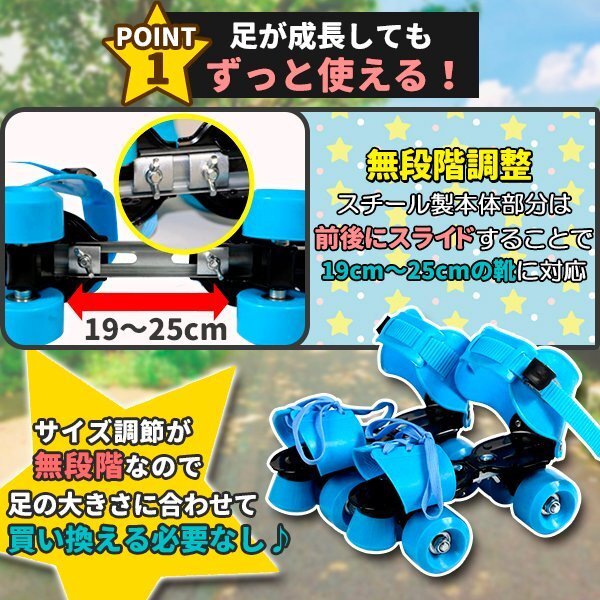 ローラースケート ローラーシューズ クワッドスケートコロコロ フリーサイズ 19cmから25cm ブルー