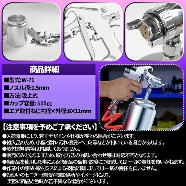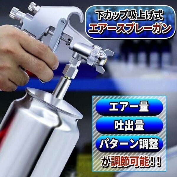 エアースプレーガン 吸上式(下カップ) 600cc ノズル 口径 1.5mm エアスプレーガン エアガン 板金 塗装 洗車 塗装スプレー ポンプ