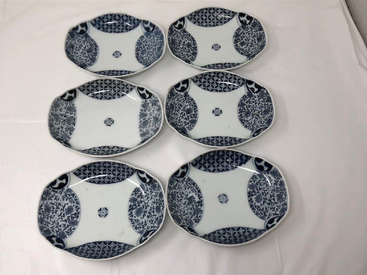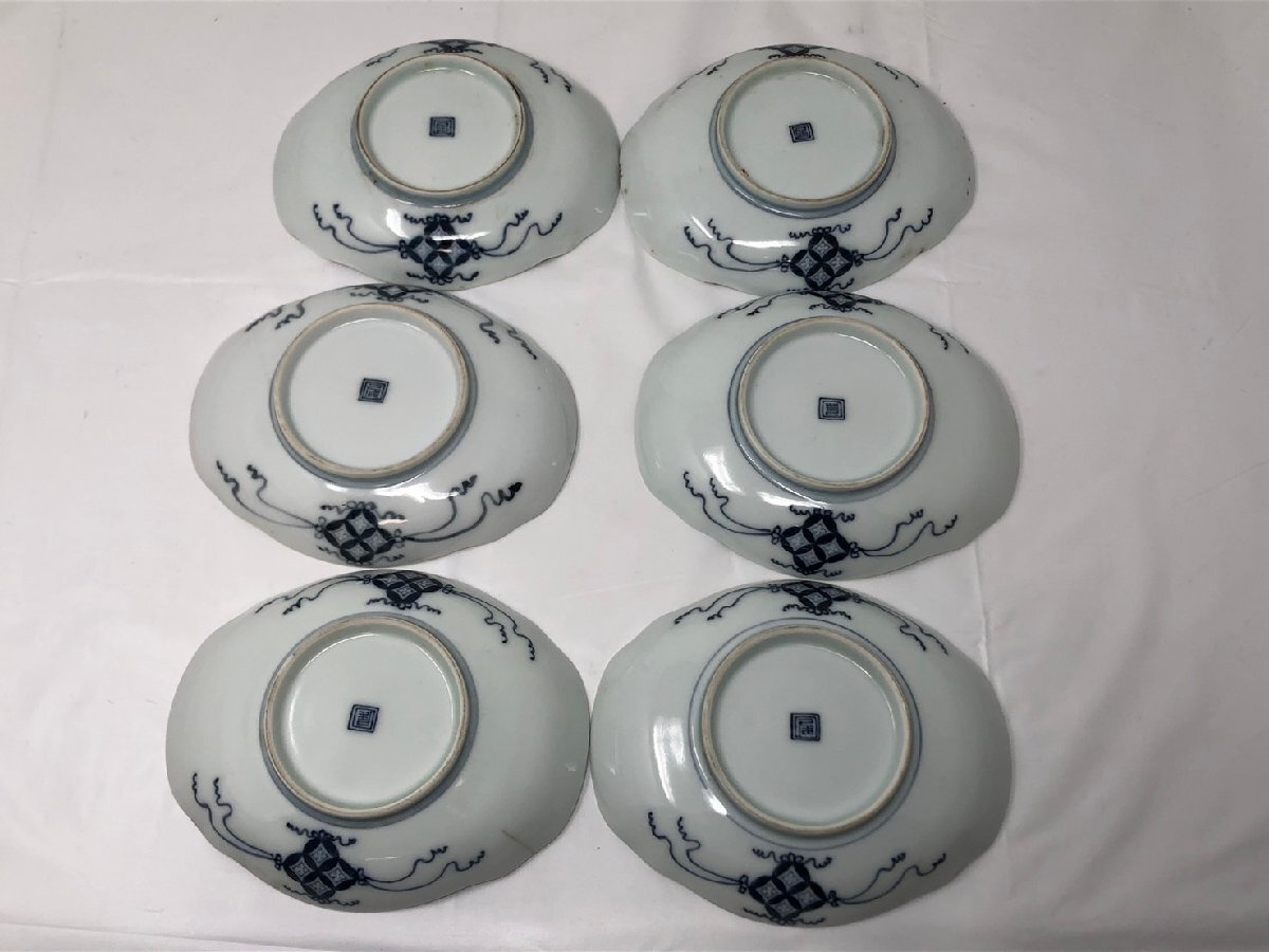 ◆古伊万里 印判手 在銘有 6枚組 詳細不明 ヒビあり 現状品◆15114