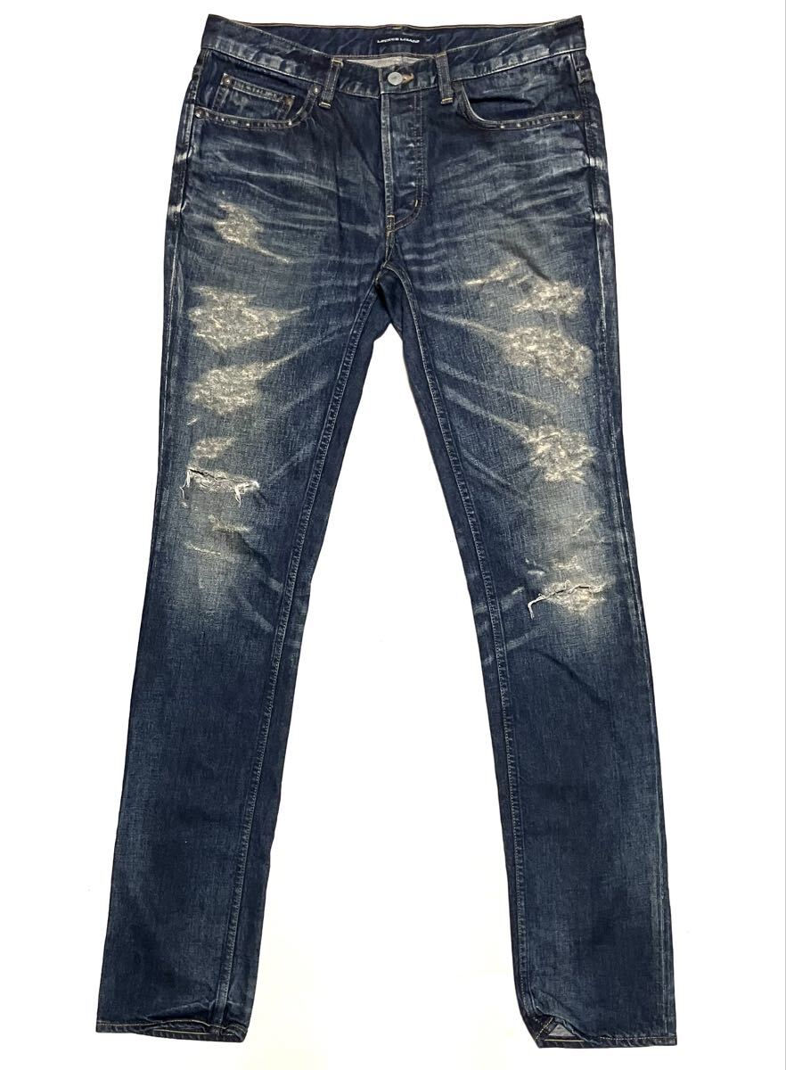 クラッシュ感があるダメージ加工以外に右膝やや上に切り込みのダメージが入っています。