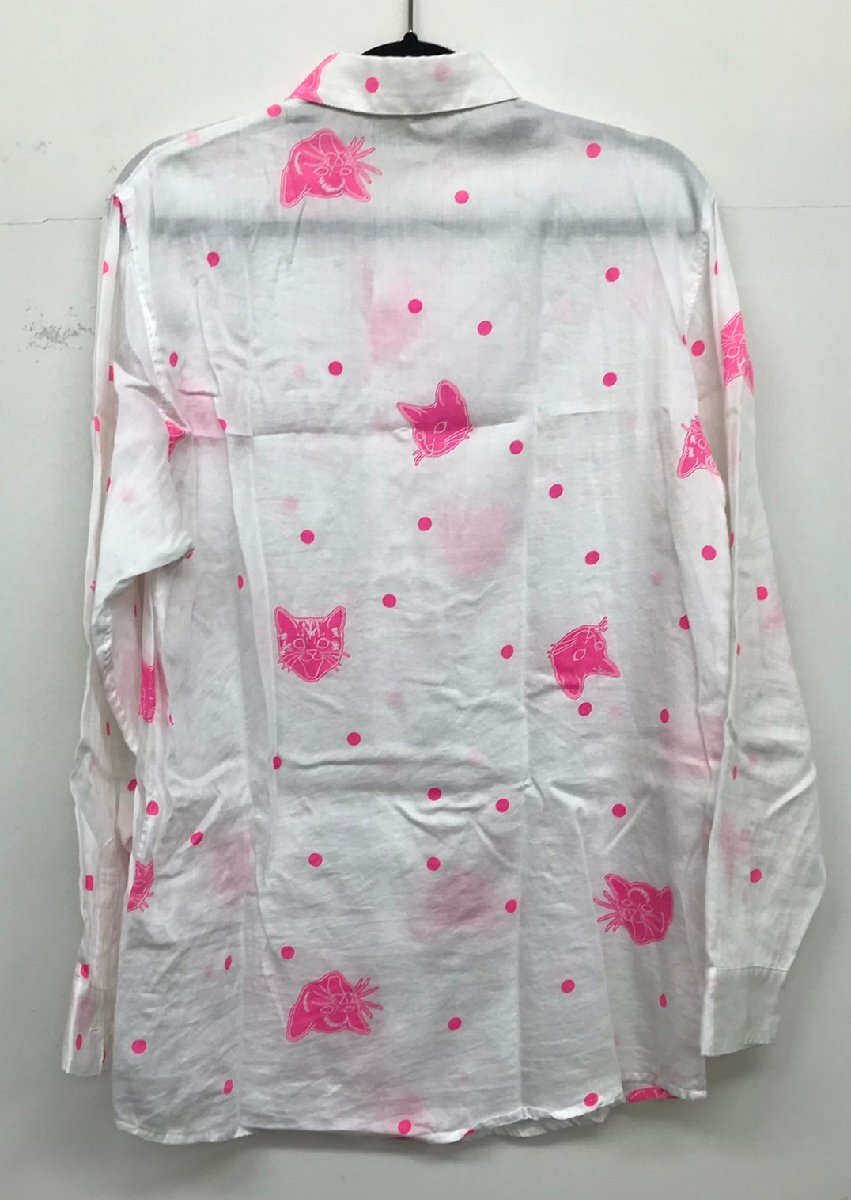 1円~【古着】MILKBOY ミルクボーイ キャットプリント 長袖 シャツ サイズM ホワイト トップス