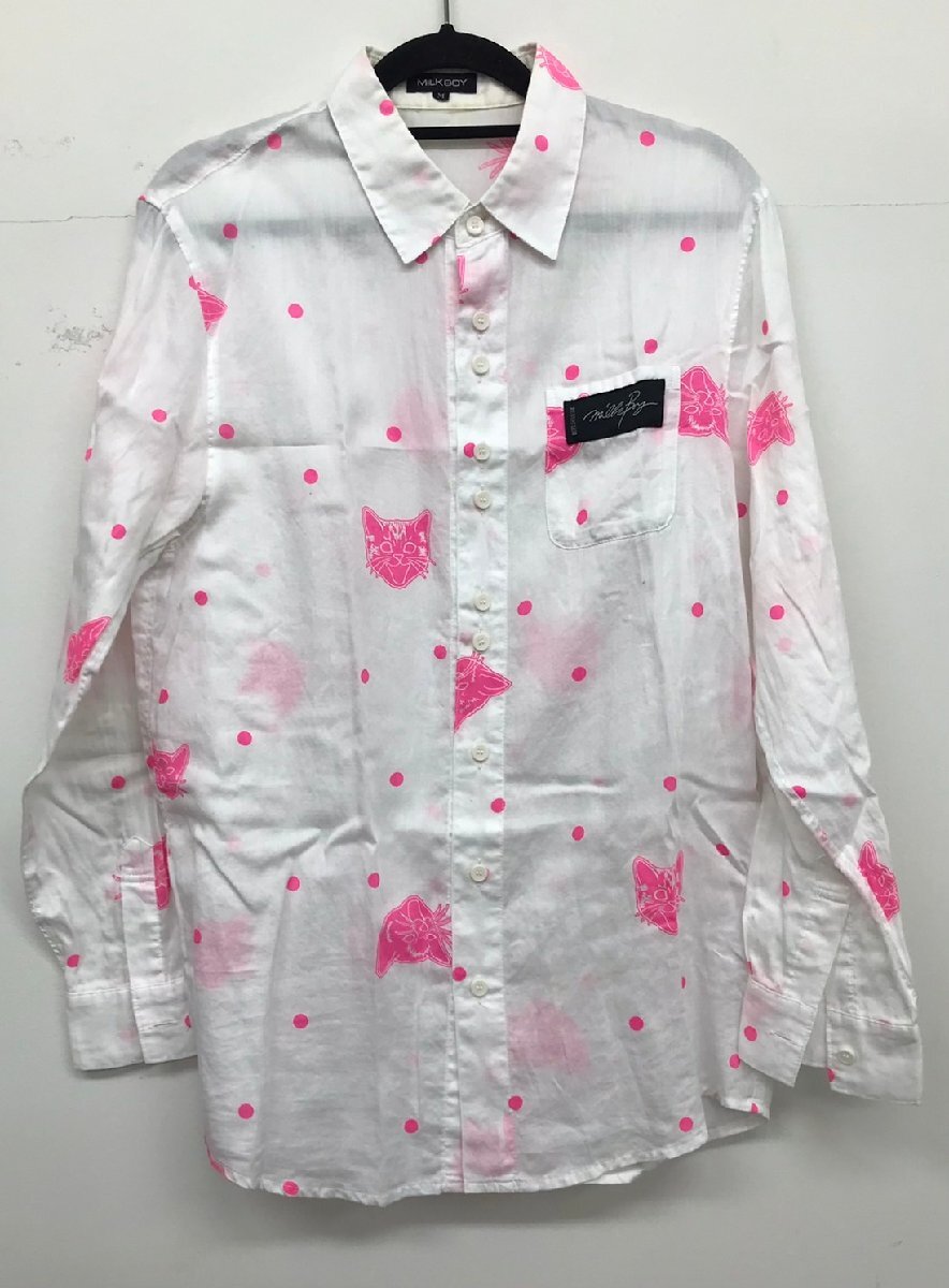 商 品 名 1円~【古着】MILKBOY ミルクボーイ キャットプリント 長袖 シャツ サイズM ホワイト トップス
