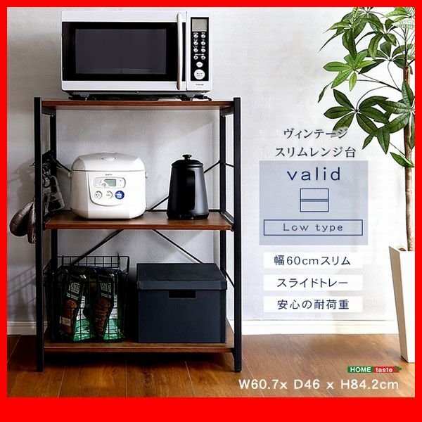 | キッチン家電や雑貨をまとめて収納できるヴィンテージスリムレンジ台! 幅60cmとスリムで一人暮らしの方や追加のラックとしても最適です。 高さが84cmなのでちょっとした作業スペースとしてもお使いいただけます。 スライドトレーにはポットや炊飯器が置けフレーム構造で熱や蒸気がこもりません。 サイドフレームにはS字フックを使い吊るしたり掛けたりできる便利アイテムです。 |