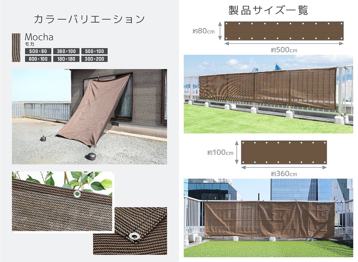 直射日光を和らげる! 暑さ対策と目隠しにも最適な日除けシェードです。 ■風通しのいい通気タイプで快適 UVカット率92%以上&遮光率90%以上! 日差しをしっかりカット!室温上昇を抑制し、 通気性のある素材が風を通すので、快適に過ごすことができます。 ■目隠しにも最適 外からの気になる視線も遮り、プライバシーを守ります。 ■錆びにくいアルミ製のハトメ ハトメを多めに使用しているので、しっかり固定できて安全です。 縦にも横にも使えてピンっと張れます! ■軽量タイプで取り付け簡単 付属の紐や結束バンドを穴に通して固定するだけなので、取り付けも簡単♪ 商品コード:HYS01MOE ■商品仕様 カラー:モカ 材質:HDPE サイズ(約):100×360cm UVカット率:92.3% 遮光率:90.3% ■付属品 ロープ(約160cm)×4本 結束バンド ■保障期間 30日間 ※商品到着後30日以内の初期不良・破損のみご対応させていただきます。 ■注意事項 ※商品は、モニターによって色合いが異なって見える場合があります。 ※仕様・デザインは改良のため予告なく変更することがあります。 【もちろん新品未使用品です】 |