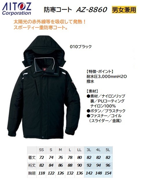 【超特価】◆アイトス [秋冬] 防寒コート AZ-8860【010ブラック・Lサイズ】定価22550円・耐水圧3,000mmH2O・撥水の品を、即決2980円