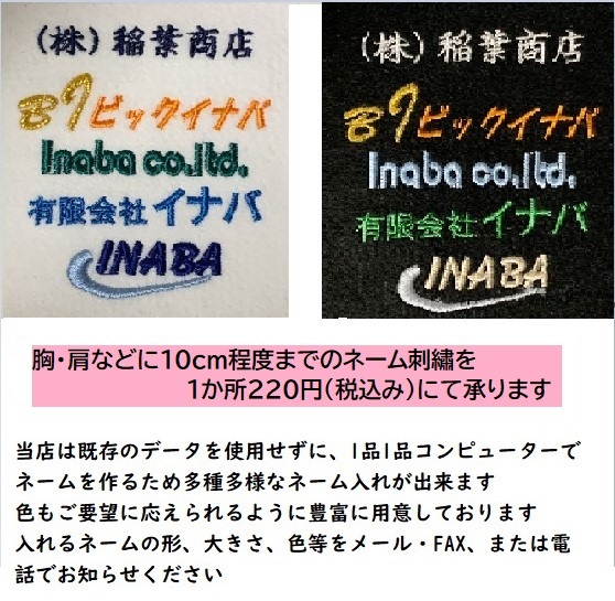 別途1枚に付き¥220税込みにて、胸に10cm程度のネーム入れ出来ます