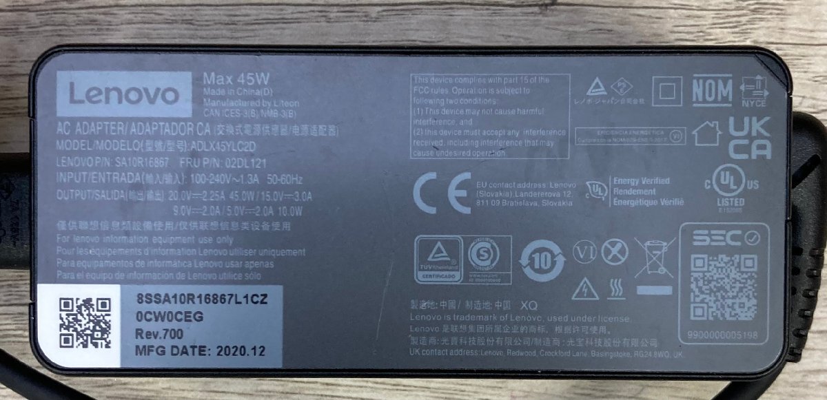 | 商品名 | LENOVO 純正 ACアダプター USB TYPE-C 45W 20.0V-2.25A ADLX45YLC2D 10本 約2.7kg まとめ売り 現状品 (通電可) |