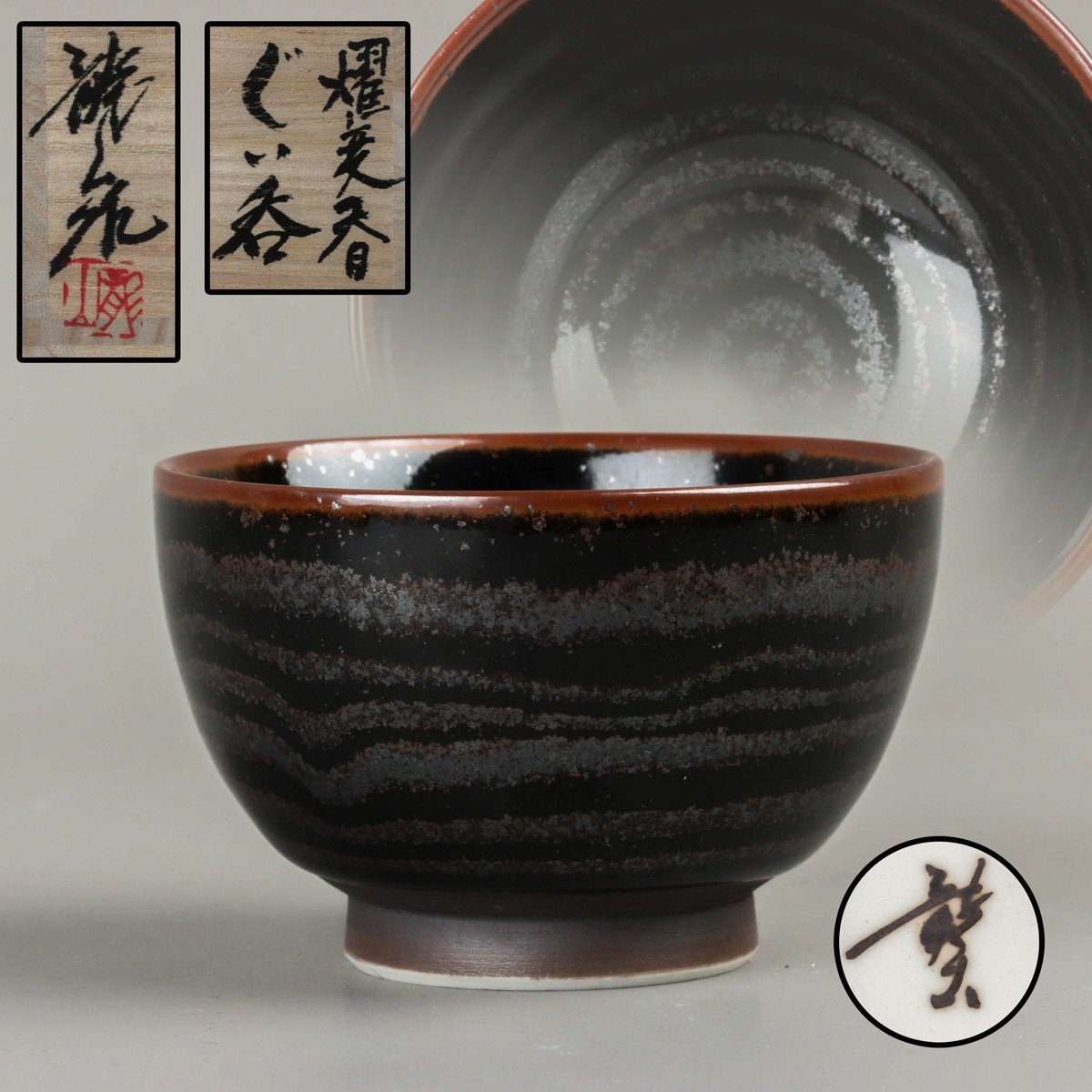 【SAG】青木龍山 燿変天目ぐい呑 共箱 共布 本物保証