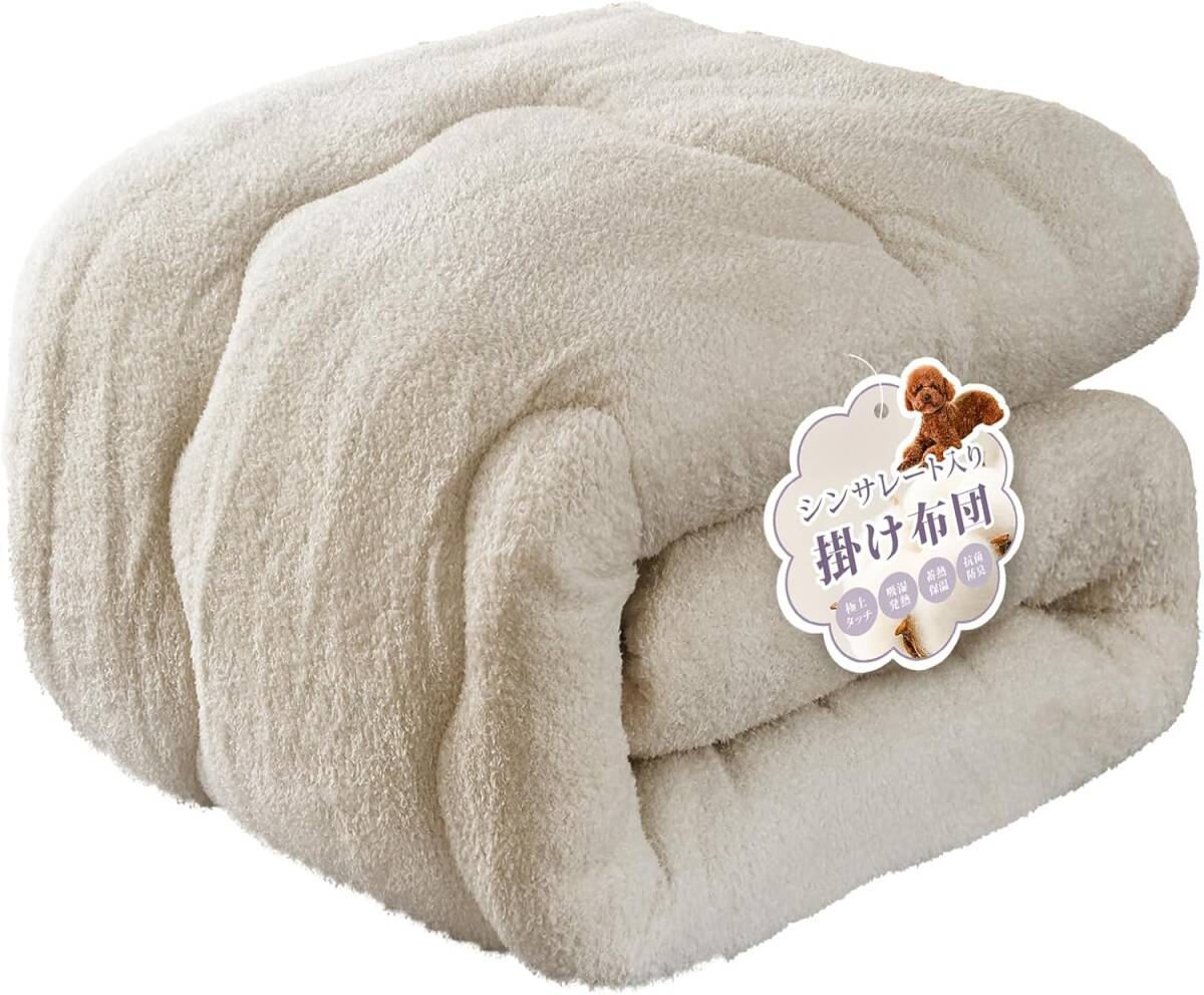 【薄くて、軽くて、あたたかいシンサレート】シンサレート高機能中綿素材は細かい繊維が絡みあってできており、その繊維の隙間にあたたかい空気をしっかり閉じ込めることができます。さらに外からの冷気や湿気も遮断するため、抜群の保温力は発揮できるのです。また、軽量なので体への負担も少なく、重ぬの掛け布団が苦手な方にもおすすめです。