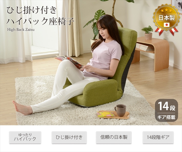| 背もたれが長い 座椅子 JERO ハイバック 座る リクライニング ひじ ひじ掛け 日本製 背中 長い シンプル 和室 リビング 職人仕上げ |