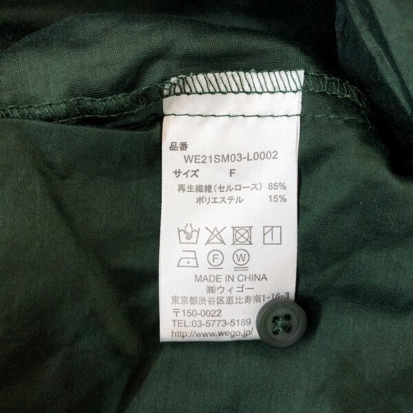 WEGO ウィゴー レディース オーガンジー ビッグシルエットシャツ F 緑 です。