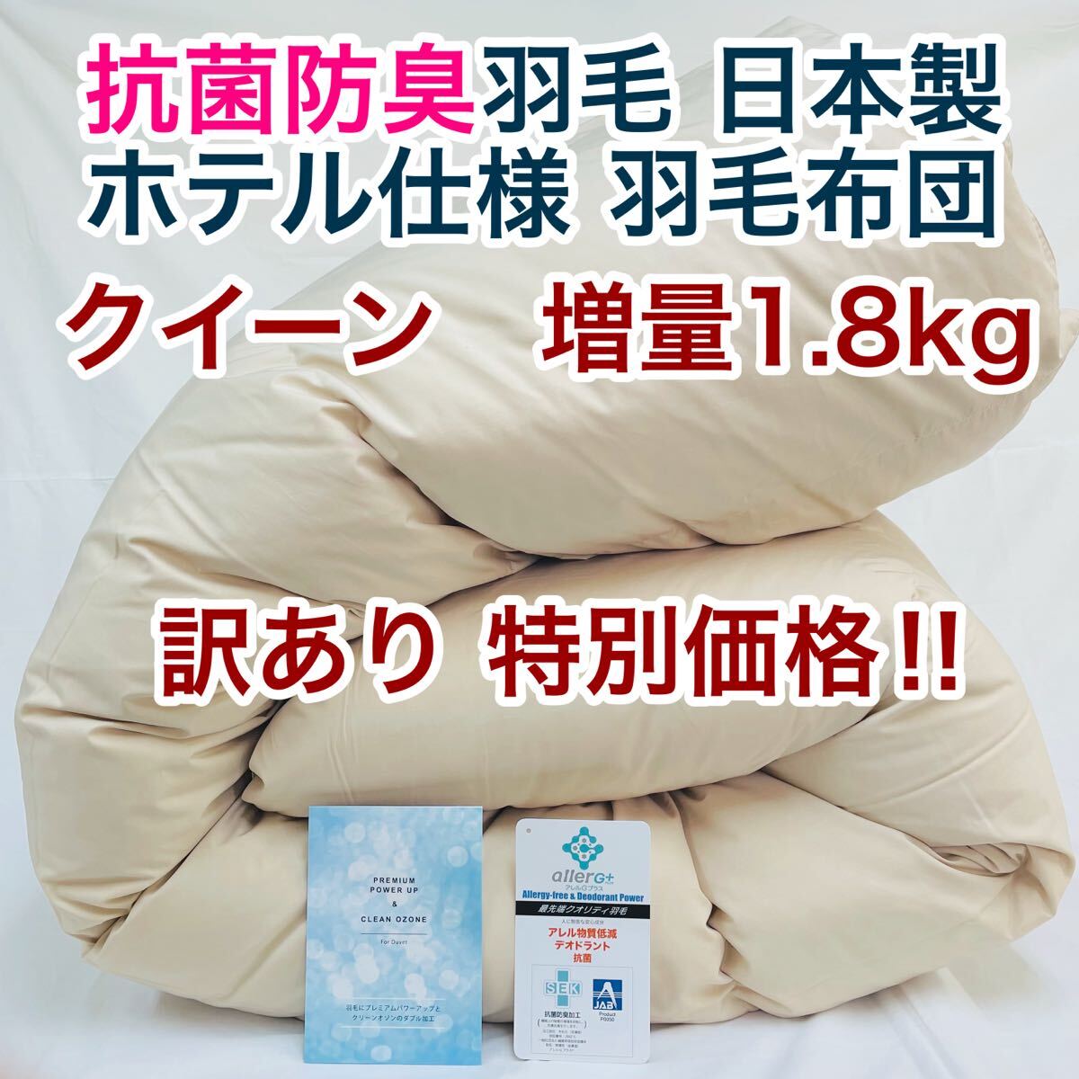 抗菌防臭羽毛に、プレミアムパワーアップ、クリーンオゾン加工と、とても清潔で安心安全な羽毛布団です