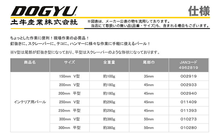 土牛/DOGYU インテリア用バール 250mmV型