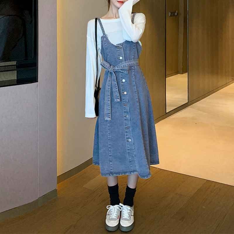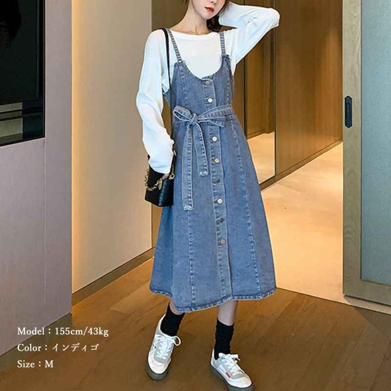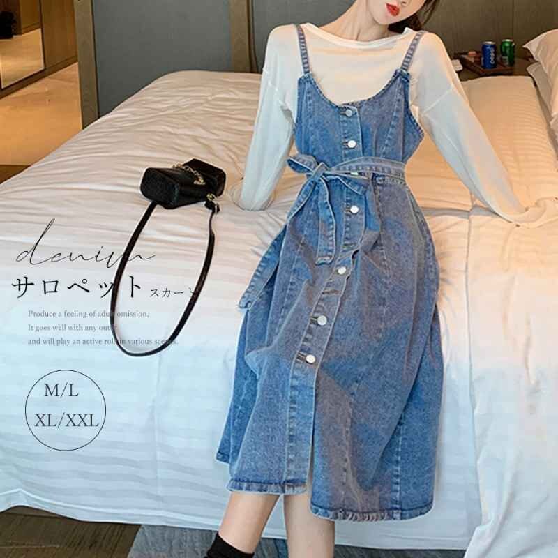 1枚で大人可愛く着こなしが完成するデニムサロペットスカート
