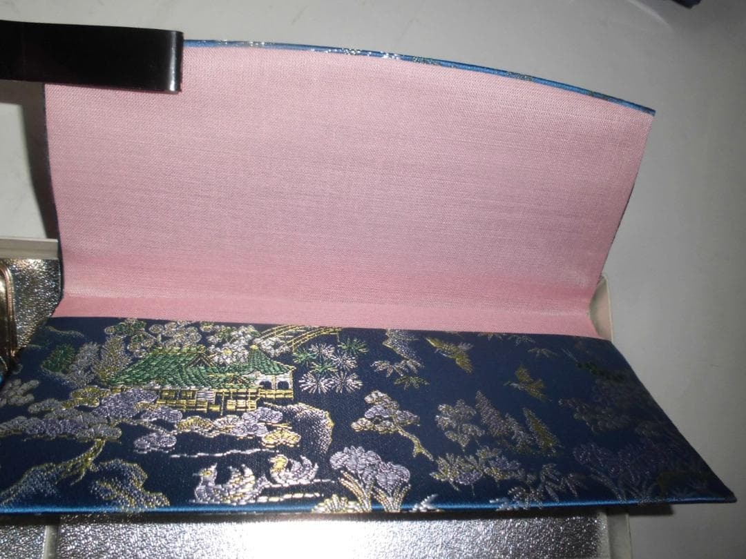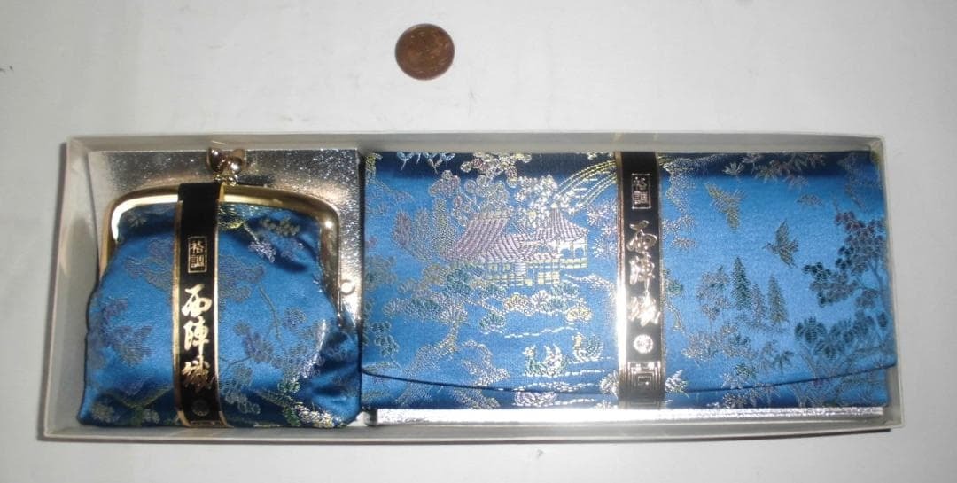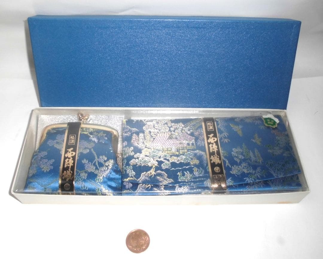 X272 箱無し発送です 京都 西陣織 札入れ + がま口財布 セット 青/ピンク 未使用