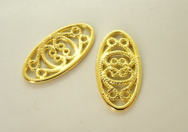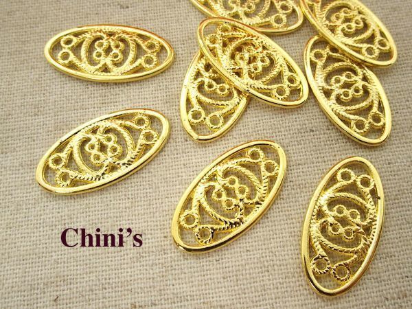 即決! 10個 透かしメタルパーツ 楕円☆チャーム リンク