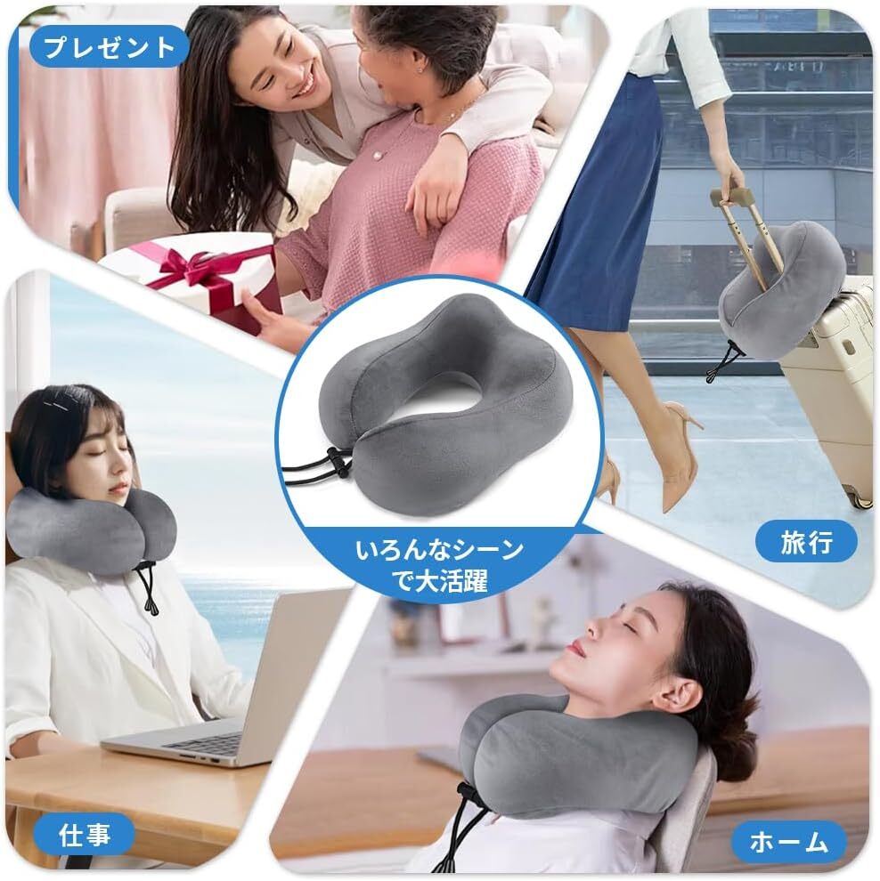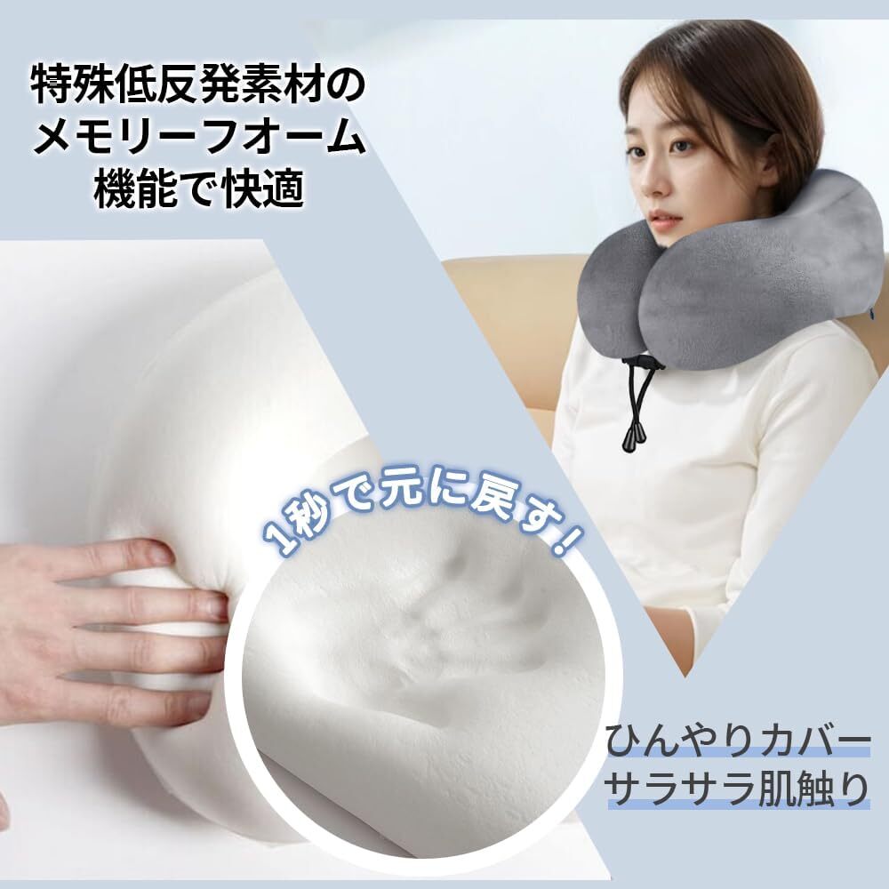 • 「優れたサポート性」:高密度のメモリーフォームが首のカーブにフィット。適度な反発で頭部を支え、飛行機やデスクワーク中の首・肩の負担を軽減。長期間使用しても変形しにくい。