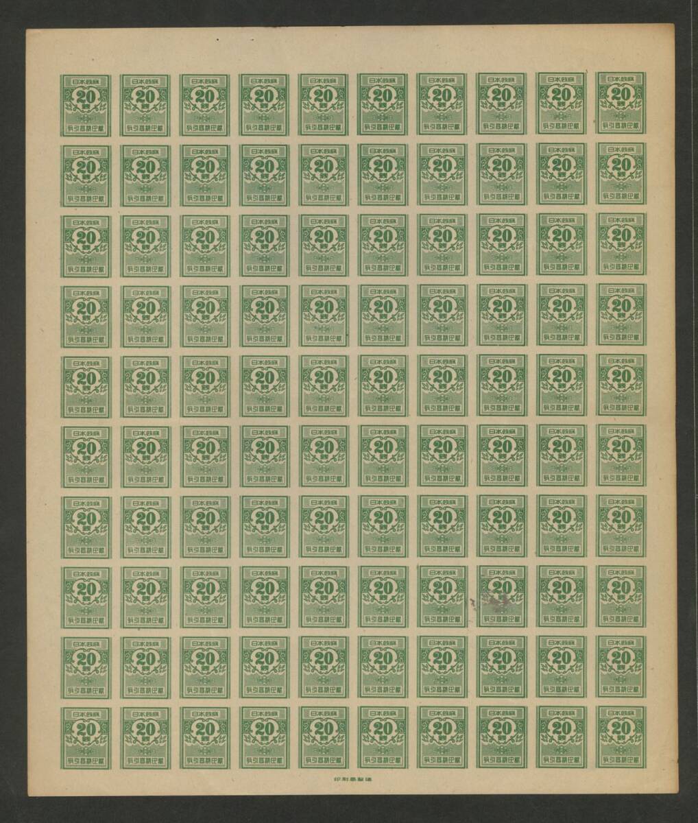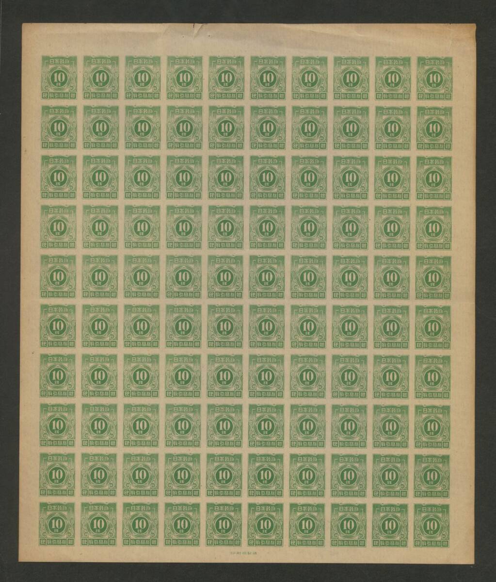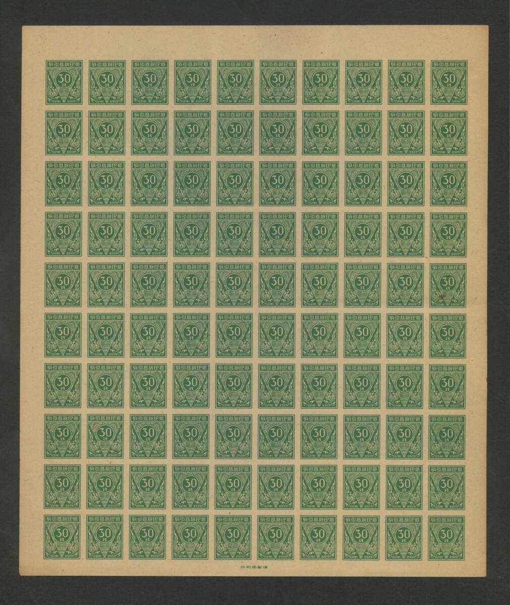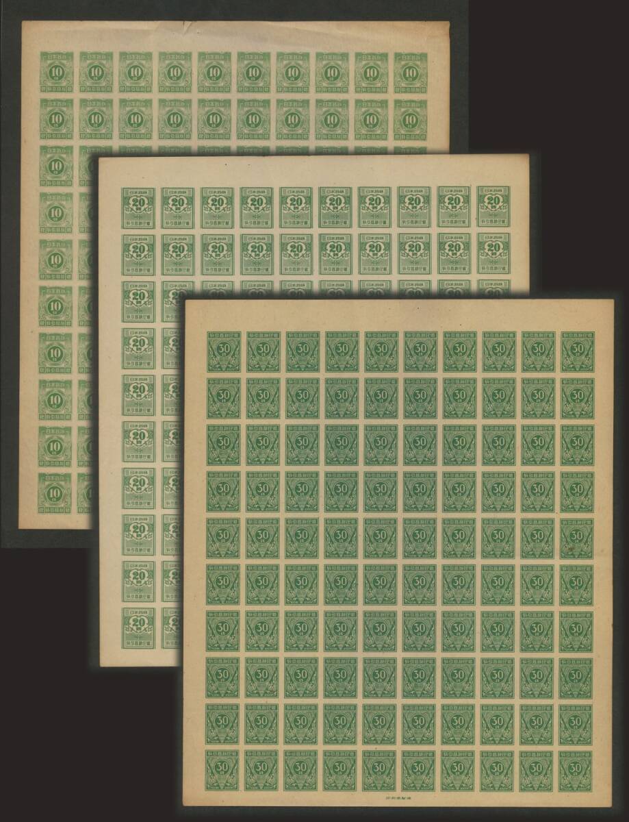 日本 1949年頃「取引高税印紙」10銭、20銭、30銭 100面シート3枚 未使用 破れ、ヤケ有