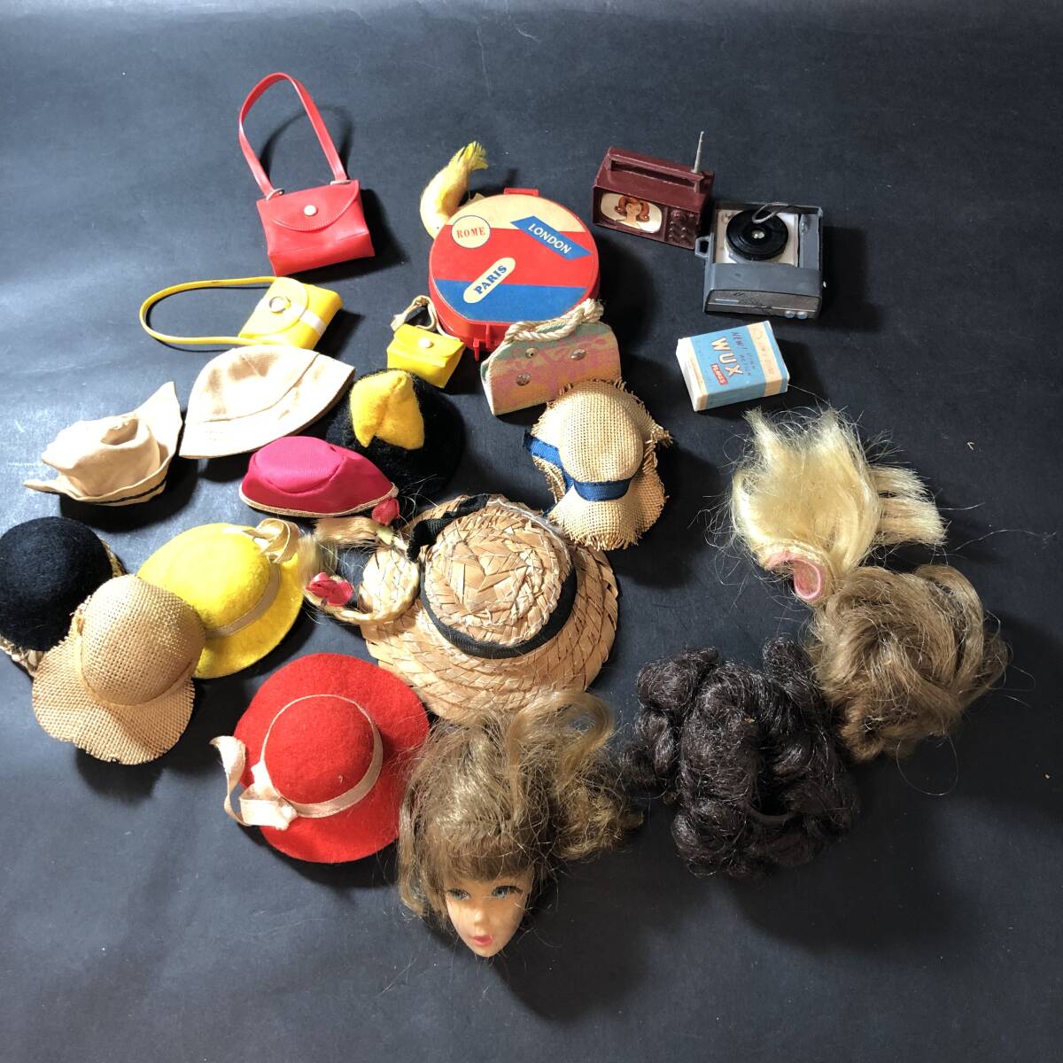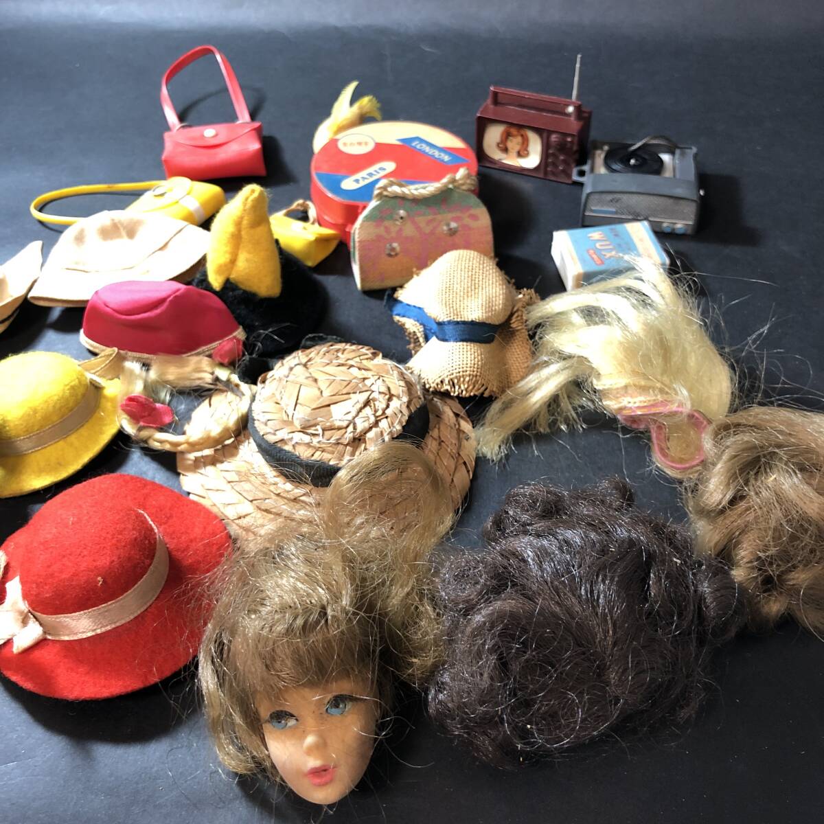 ビンテージ 当時物 着せ替え人形 帽子・バック・かつら・頭等 小物色々 まとめて 昭和レトロ 当時物 バービー人形 トミーちゃん