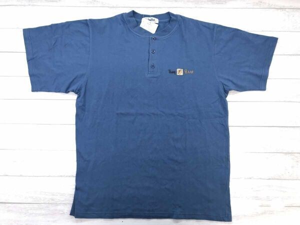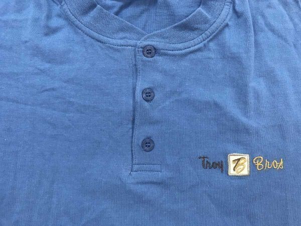 訳あり新品 トロイブロス Troy Bros アメカジ アウトドア レジャー ネイティブ ロゴ刺繍 ヘンリーネック 半袖Tシャツ メンズ M ブルーです。