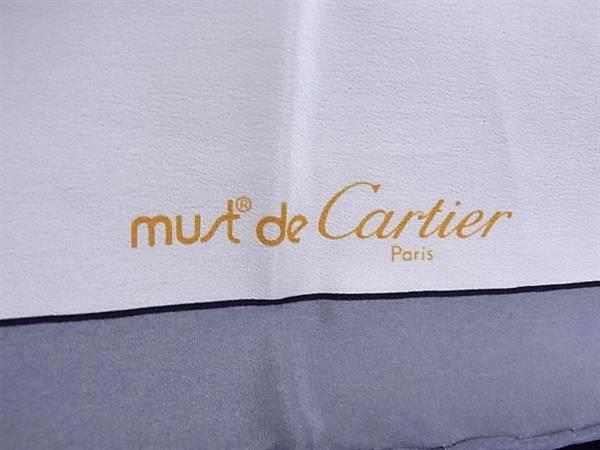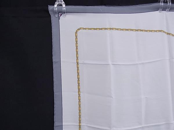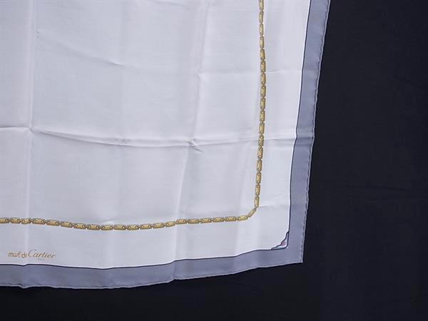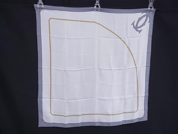 ■美品■ Cartier カルティエ マストライン シルク100% チェーン 大判 スカーフ ストール ショール レディース グレー系 DI9839