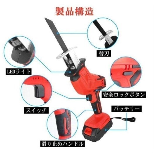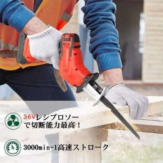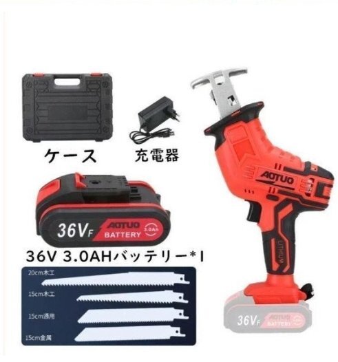 電動ノコギリ レシプロソー 充電式 コードレス 36V 無段変速 安全ロックボタン 金属切断 木工切断 庭木剪定 収納ケース付き