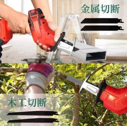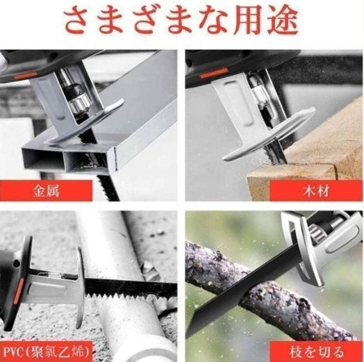 【ブレード交換簡単&切断面きれい】コードレスレシプロソーは替刃4本が付いているので、様々な材料のカットが全部可能になり、切れ味も抜群です。また、工具レスでブレード交換ができるので、適切なブレードを使い分けることで、粗大ゴミの解体、庭木剪定、金属類の解体や果樹園の剪定などの切断作業の切断面が全部きれいになるだけでなく、作業効率も高く、ブレードの寿命も長いです。