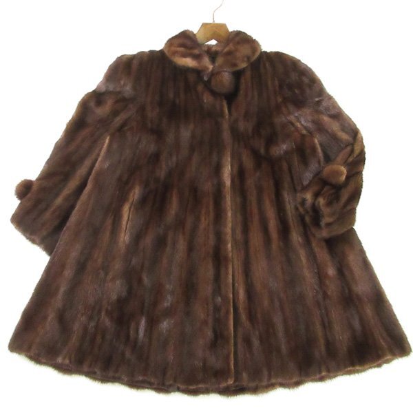 | 商品名 | EMBA エンバ デミバフミンク ポンポンボタン付き オーバーサイズ Aライン セミロングコート 着丈89cm XL程度 |