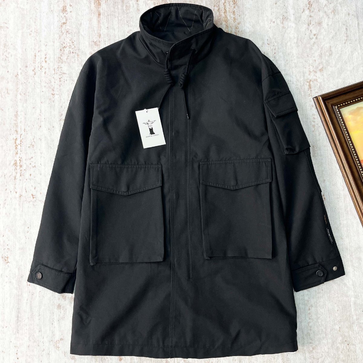 ジャケット ロンドン製造 快適 保温 防風 無地 スタンドネック アウター ブレザー コート ミドル丈 カジュアル 春秋 メンズ 紳士 SIZE:L