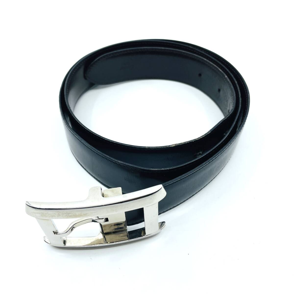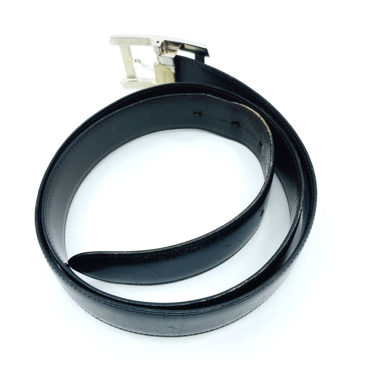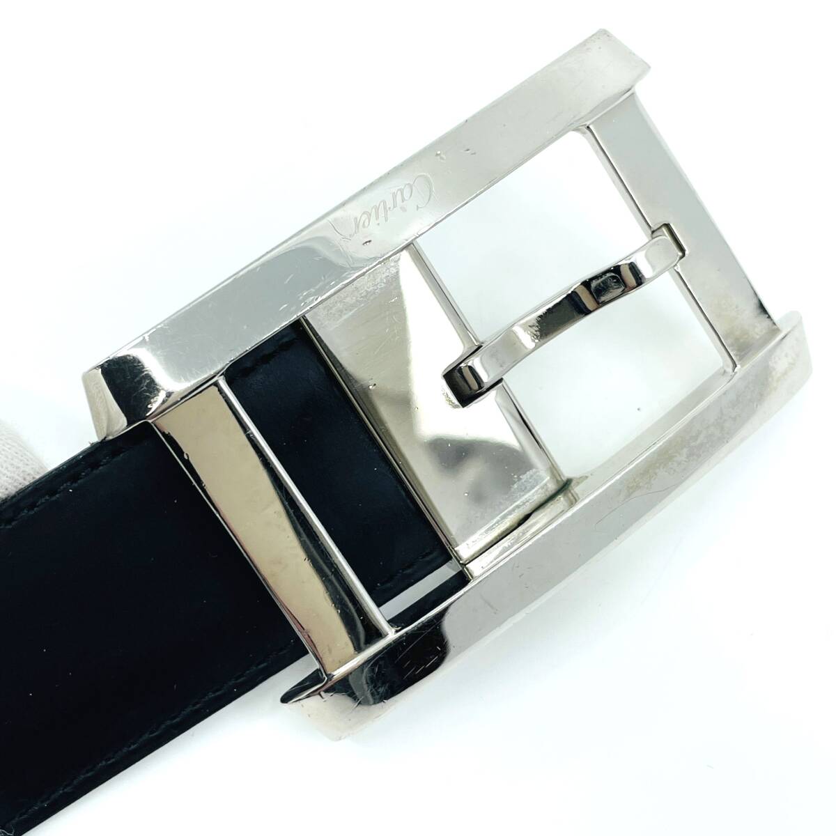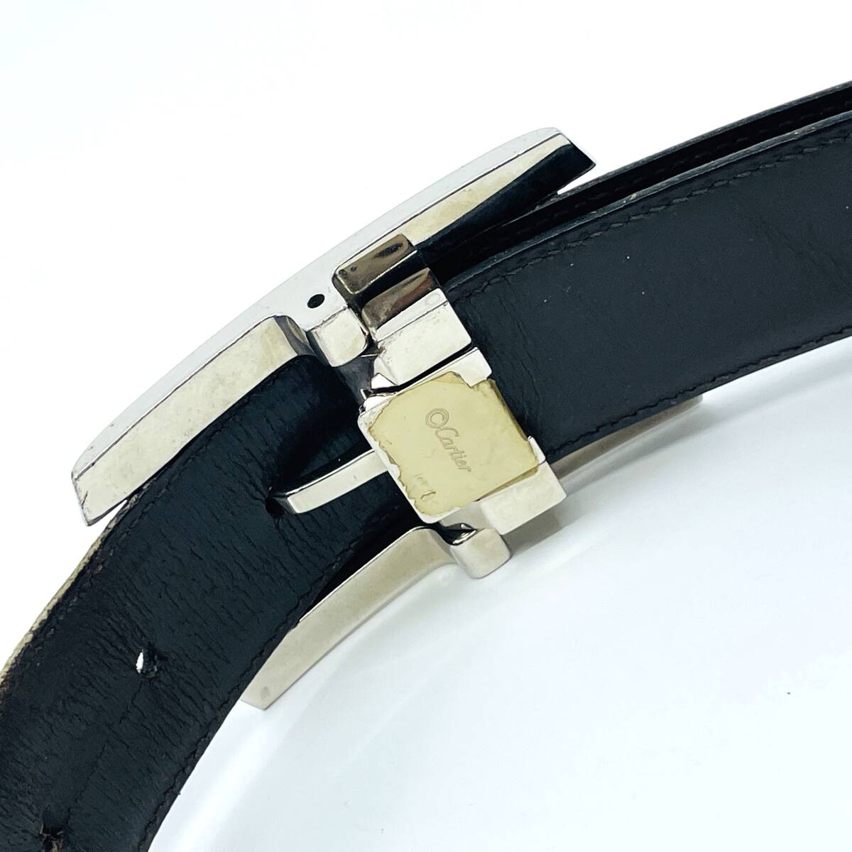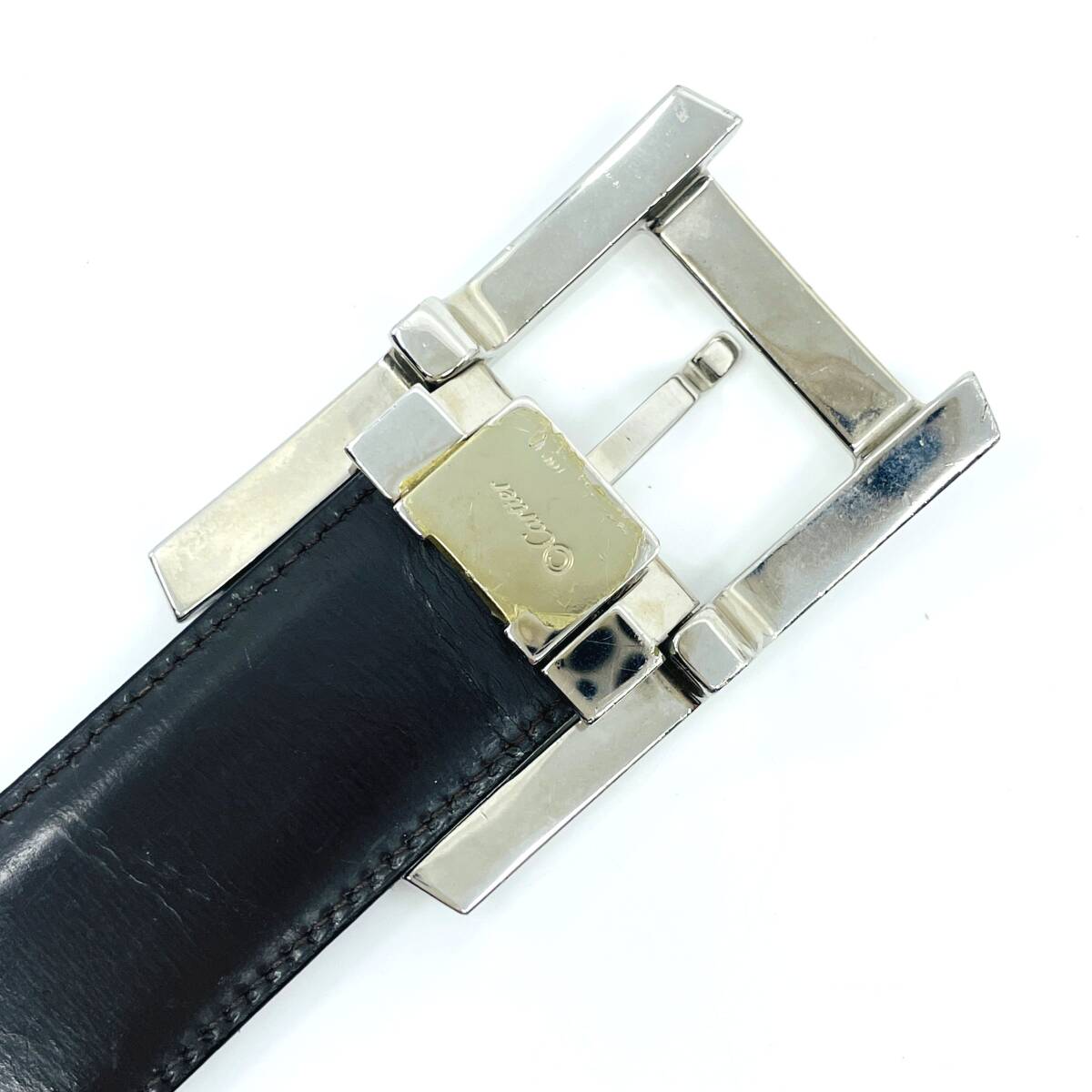 Cartier カルティエ タンク レザーベルト 5穴 ブラック×ブラウン バックルシルバー メンズ ウエスト 約89.5-99.5cm