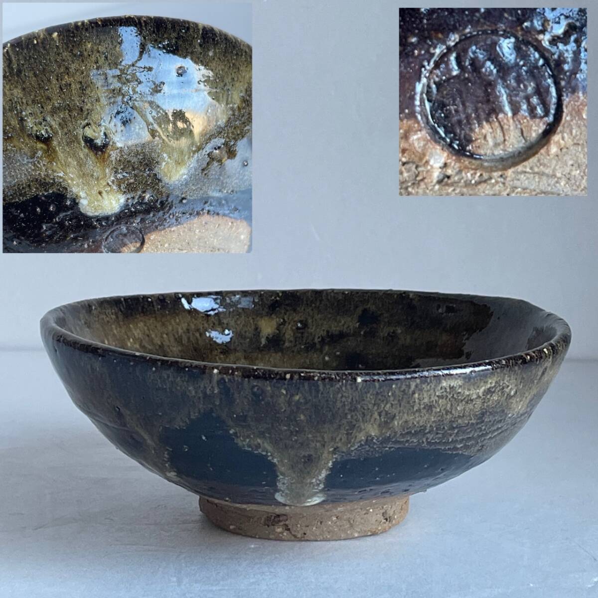 【和美】②完全ウブ出 在銘 垂釉 茶碗 茶道具
