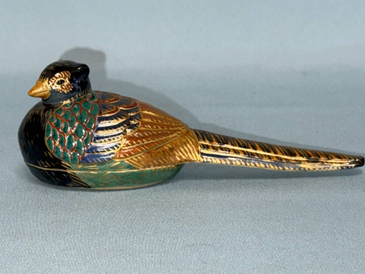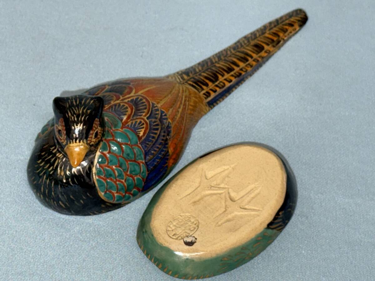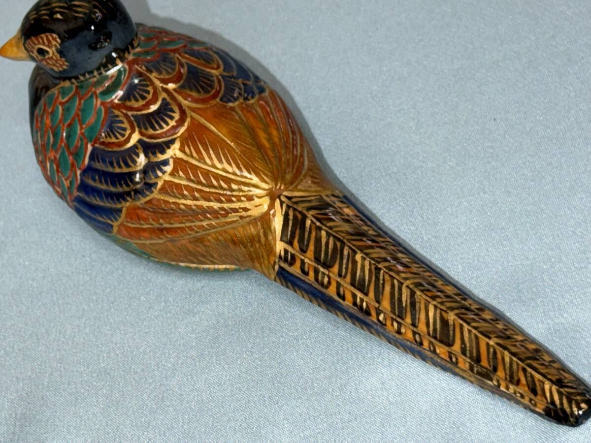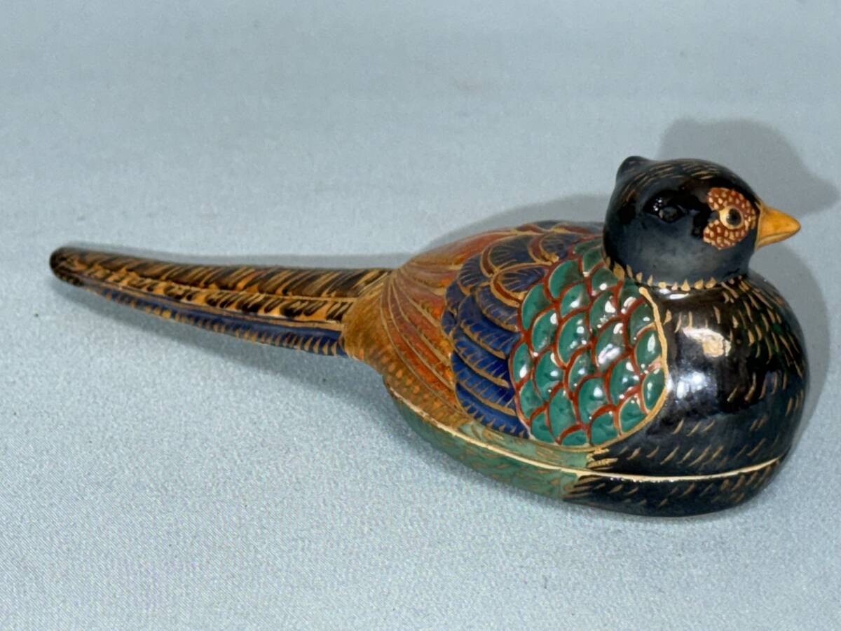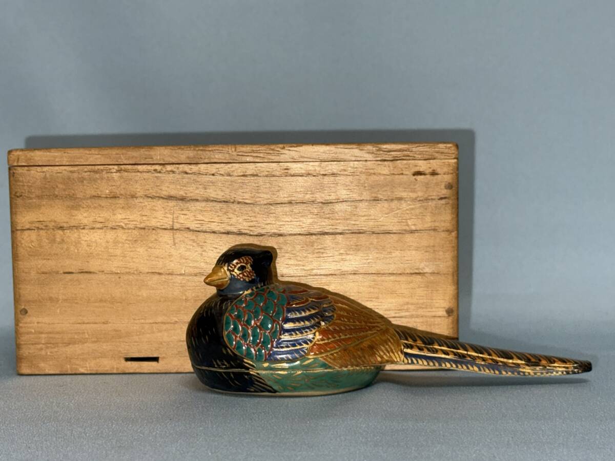 洗練された造り、尾を水平に伸ばした雉が色彩豊かに表現され、色や形とも見事に仕上がった、素晴らしい作品です。