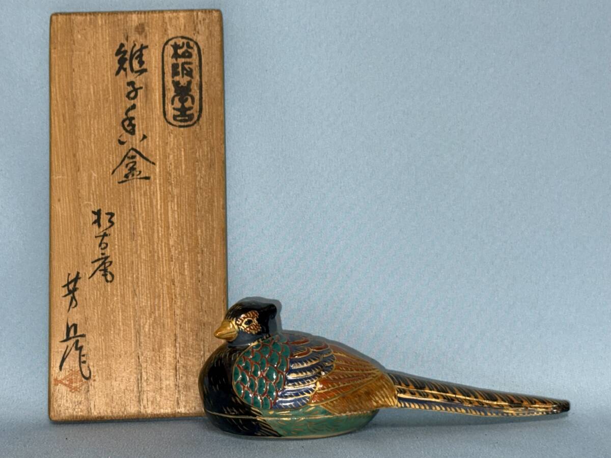 【心園】茶道具 雉香合 【 萬古焼 金彩色絵 雉子 香合 】 松古窯 佐久間芳丘 作 共箱 【真作】 松阪萬古