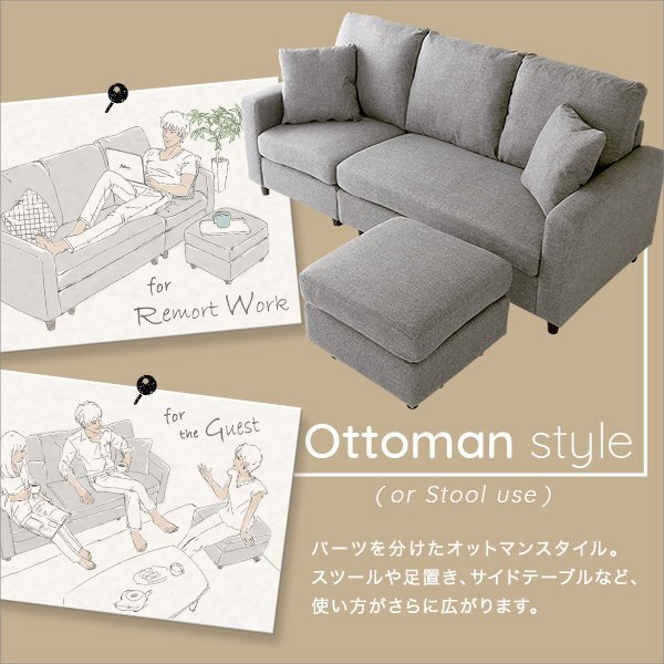 北欧インテリア 3人掛けコンパクトカウチソファ【ルグナ】