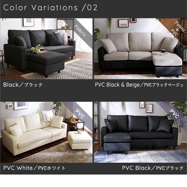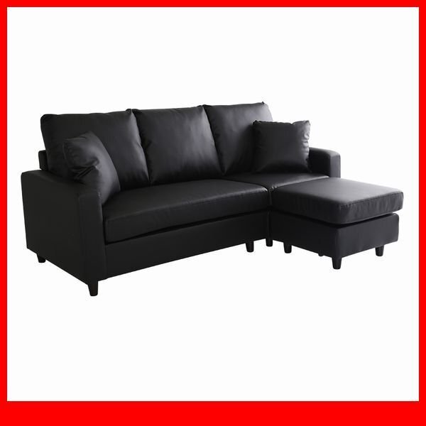 ソファ★北欧インテリア 3人掛け コンパクトカウチソファ クッション付き/PVC ポケットコイル S字バネ 天然木脚/PVCブラック/限定 特価/a5