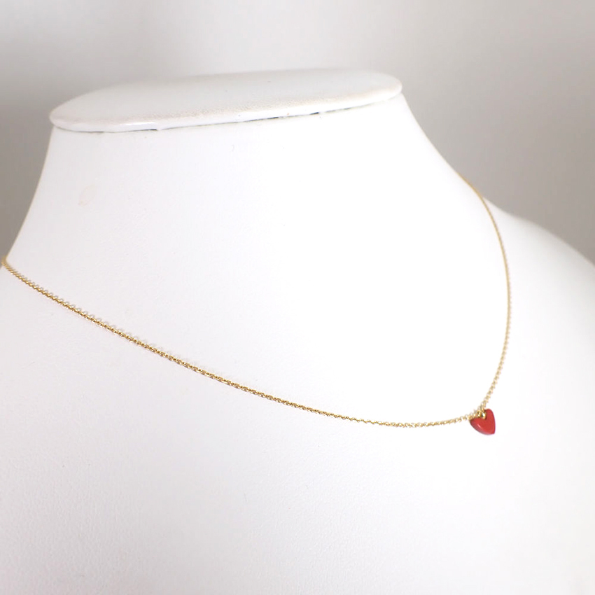 鮮やかな赤が印象的なアーカーのティランハートのネックレスです。