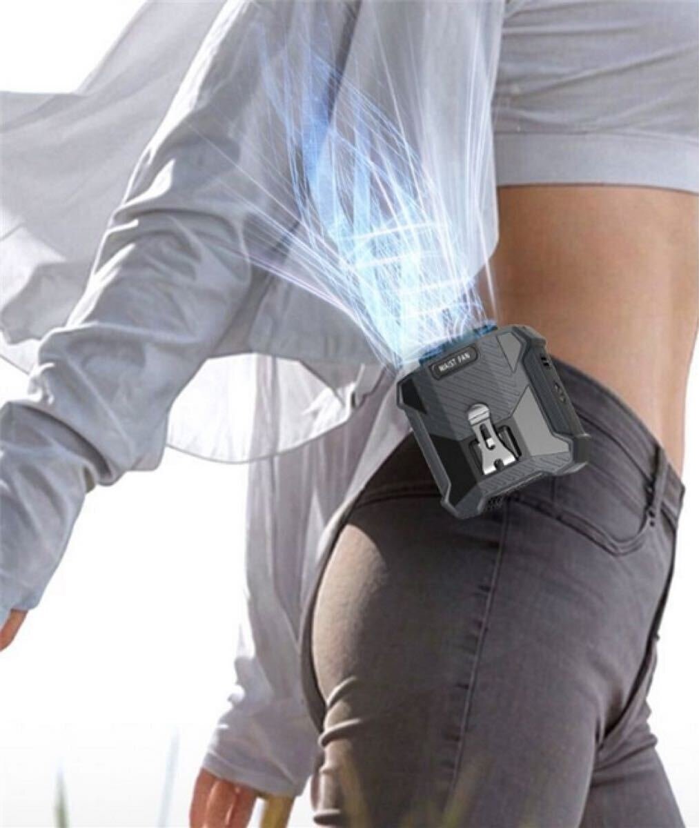 *携帯しやすい腰掛けタイプ:扇風機についているフックでそのままズボンに掛けますが、 付属のベルトで腰にもかけます。両手解放でもっと自由に!